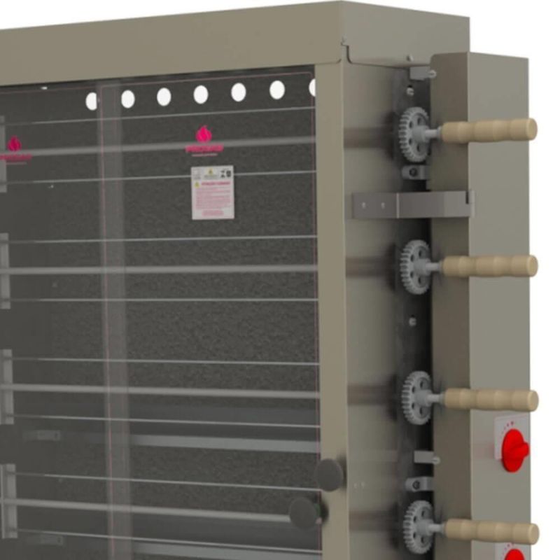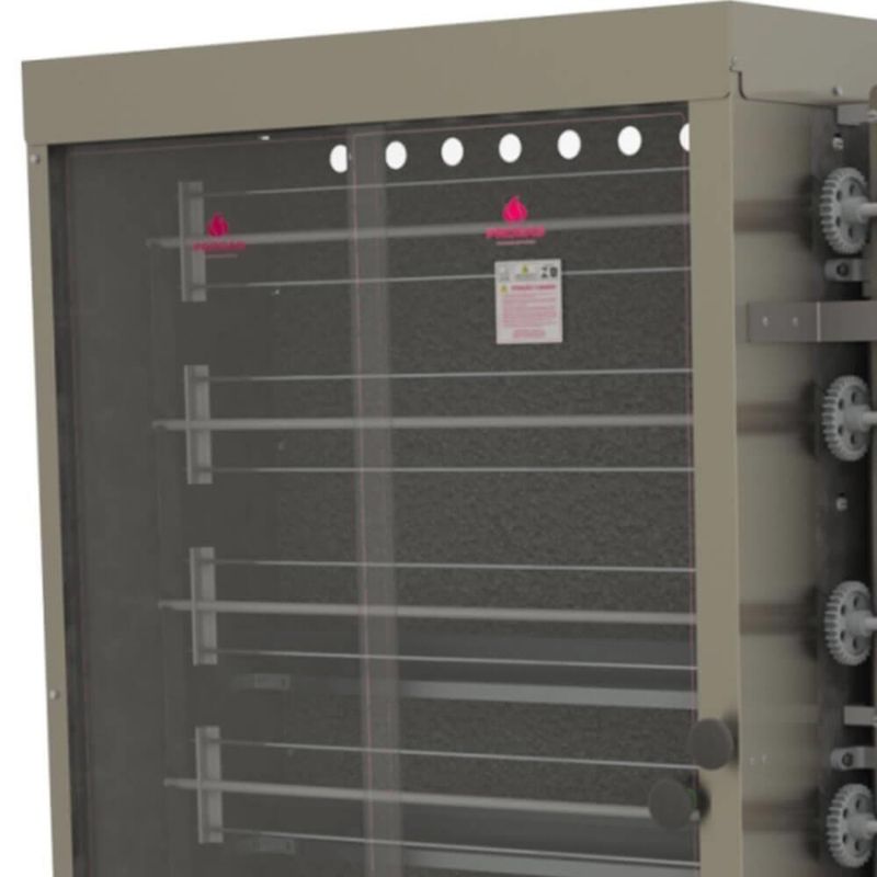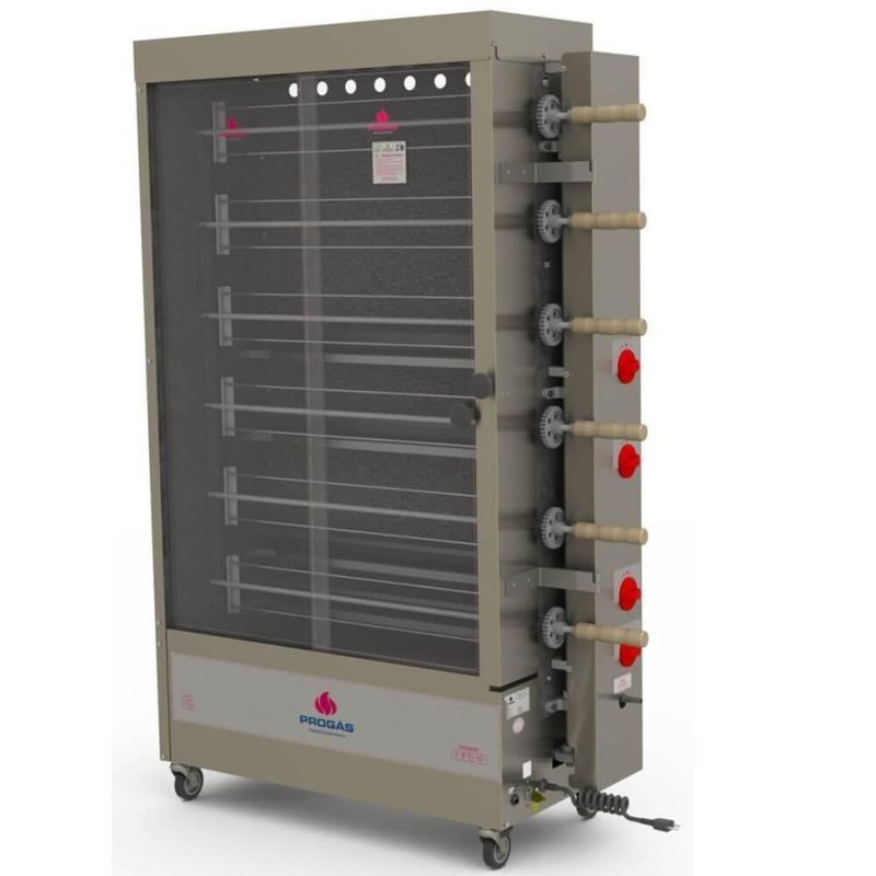 Forno Industrial Rotativo A Gás Progás Style Pr-634 6 Espetos Para 30 Frangos Bivolt P25420FORNO ASSADOR ROTATIVO TUBULAR A GÁS PROGÁS PR-634 30 FRANGOS 6 ESPETOS BIVOLT P25420Marca: ProgásModelo: Rotativo Tubular a Gás 30 Frangos 6 Espetos Bivolt PR-634 P25420DESCRIÇÃO- Com o assador você terá praticidade e a certeza de assado no ponto certo e muito saboroso.- O assador certo para você que busca praticidade e rapidez no preparo de seus alimentos.- Este forno rotativo assa todos os tipos de carne.- A capacidade é de 5 frangos de até 2 Kg por espeto.- Este modelo PR-634 possui 4 queimadores tubulares.INFORMAÇÕES TÉCNICAS- Estrutura externa em inox escovado 430.- Costa interna esmaltada.- Porta em vidro temperado.- Com gaveta coletora de gordura que facilita o manuseio e a limpeza.- Com rodízios que facilitam o deslocamento.- Controle progressivo de chama máxima e mínima.- Aquecimento a gás através de queimadores tubulares.- Modelo PR 634: 4 queimadores TUBULARES.- Manipulador controlador gás.- Bacia interna em inox.- Baixa pressão.- Entrada de gás na lateral.- Número de Espetos: 6.- Distância entre os espetos: 20 cm.- Espeto tipo garfo.- Capacidade de Frangos: Aproximadamente 30;- Capacidade em Quilos: Aproximadamente 60 Kg;- Equipamentos BIVOLT tensão 127/220v;- Frequência: 50/60 Hz.- Motor monofásico de 1/4cv;- Potência: 360- 275 Watts.- Consumo Médio Elétrico: 0,38 Kw/h.- Consumo de gás: 1,49 Kg/h.PESO- Peso Líquido – 73,4 Kg- Peso Bruto – 94,9 KgGARANTIA- 6 meses de garantia.DIMENSÕES- Dimensões Embalagem (Compr. X Larg. X Alt.): 114x 53x 175 cm.- Dimensões Produto (Compr. X Larg. X Alt.): 113x 47x 168 cm.- Dimensões internas do forno (Compr. X Larg. X Alt.): 85x 36,5x 119 cm. Marca: Progás | Peso Líquido: 0.0000 | Quantidade de espetos: 6 | Modelo: Não Informado | Comprimento: 113 cm | Voltagem: Bivolt | Peso: 94.9 kg | Tipo de assador de frango: Gás | Altura: 168 cm | Cubagem: 1.063392 | EmbalagemAltura-cm: 176 | Capacidade de comida por espeto: 10 kg | Número de espetos: 6 | Materiais: Aço inoxidável | EmbalagemLargura-cm: 114 | Largura: 47 cm | EmbalagemComprimento-cm: 53 | Dias Entrega Fornecedor: 0