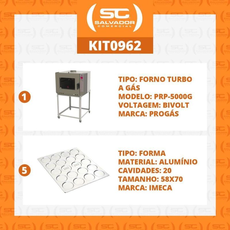 Forno Turbo A Gás 5 Níveis Prp-5000 Bivolt Progas + 5 Assadeiras Pão Hamburguer 20 Cav. Alu. 58x70 BivoltOBS: Veja na descrição os itens que acompanham o jogo.COMPONENTES DO KIT:1 - Forno Turbo Gás capacidade 5 Esteiras PRP5000 G - Progás1 - Assadeira Forma Pão Hamburguer Alumínio AFH20 - ImecaForno Turbo Gás capacidade 5 Esteiras PRP5000 G - ProgásDescrição Ficha Técnica:- Isolamento interno com lã basáltica.- Liga e desliga a turbina automaticamente ao abrir e fechar a porta.- Acionamento Vapor por controlador digital.- Rodízios que facilitam o deslocamento.- Tensão 127 ou 220v, 50/60Hz.- Baixo consumo de gás.- Gás de baixa pressão.- Capacidade de 5 esteiras ou formas 58cm x 70cm com- Produção: 125 pães 50 g por fornada.- Revestimento interno em aço galvanizado- Termômetro digital.- Consumo 0,9 Kg/h – gás GLP- Peso Líquido – 135 Kg- Peso Bruto – 155,6Kg- Medidas Internas uteis: 47 cm Alt x 58 cm P x 72 cm P- Medidas totais : ( 153 cm A montada ) x 91 cm L x 122 cm P- Medidas com a embalagem: 100 cm A x 100 cm L x 125 cm PAssadeira Forma Pão Hamburguer Alumínio AFH20 - Imeca- Produto perfeito para você que gosta produzir pães Hamburguer de altíssima qualidade.- Produto de alta durabilidade, leve e versátil, possibilitando o acondicionamento em qualquer lugar.- Estrutura reforçada com marco em aço carbono (ferro);- 20 cavidades diâmetro 11cm x 0,5 Alt.- Forma /assadeira em alumínio- Espessura 0,80cm;- Tipo: cavidade- Marca: Imeca- Peso aproximado: 0,4 kg- Peso da embalagem: 0,6 kg- Medida Externa 0,80cm A 58cm L x 70cm P Tipo de Montagem: De Piso | Produto: Forno Elétrico | Alimentação: Gás | Capacidade: 196 | Profundidade: 122 | Cor: Prata Voltagem: Bivolt