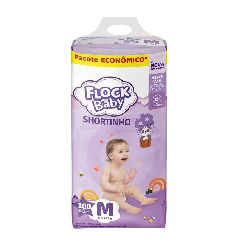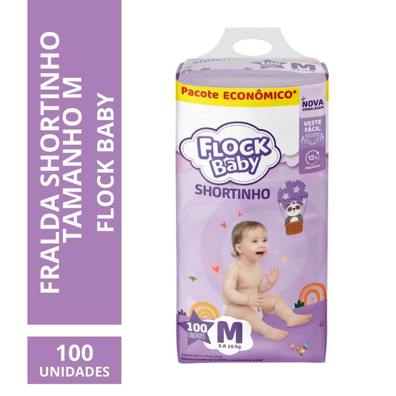 Fralda Descartável Flock Baby Shortinho Maxxi Bag M 100 Unidades A Fralda Descartável Flock Baby Shortinho Maxxi Bag M foi desenvolvida para oferecer máxima praticidade, conforto e segurança no cuidado diário do bebê. No moderno formato shortinho, veste como uma roupinha, facilitando a troca, principalmente em bebês mais ativos, e garantindo liberdade de movimentos em todas as fases do dia. Principais benefícios Formato shortinho: fácil de vestir e remover, como uma calcinha Ajuste anatômico confortável, que acompanha o crescimento do bebê Mais liberdade de movimentos, ideal para engatinhar, andar e brincar Proteção eficiente contra vazamentos, para uso diário Embalagem econômica Max, com alto rendimento Qualidade e confiança da marca Flock Baby Para quem é indicada Bebês no tamanho M, conforme indicação da embalagem Uso diurno ou noturno Ideal para rotinas agitadas, passeios e período de desfralde Como utilizar Vista a fralda como uma calcinha, ajustando corretamente ao corpo do bebê Após o uso, rasgue as laterais para facilitar a retirada Descarte adequadamente no lixo Produto de uso infantil, respeitando sempre o tamanho indicado. Instruções de armazenamento e segurança Manter em local seco, arejado e protegido da luz solar direta Manter fora do alcance de crianças quando fora do uso Produto de uso externo