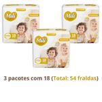 Fralda Descartável Mili Love & Care Linha Premium Tamanho: XXXG (indicado para bebês acima de 18 kg - Grandinho) Quantidade: 3 Pacotes com 18 fraldas (Total: 54 fraldas) Marca: Mili Fralda confeccionada pela moderna tecnologia Mili que vai atender as expectativas de quem procura o melhor para o seu bebe: qualidade, conforto e praticidade. A Mili Love & Care é uma fralda que vai surpreender você. Oferece todo o cuidado e suavidade que seu filho precisa para ficar sempre sequinho e confortável. A pele respira mais, a fralda se ajusta bem e o bebê se sente melhor. -Toque macio - Gel absorvente - Abas elásticas - Com extrato de algodão - deixa a pele respirar - Máxima proteção - 6 camadas que deixam o bebê protegido e sequinho