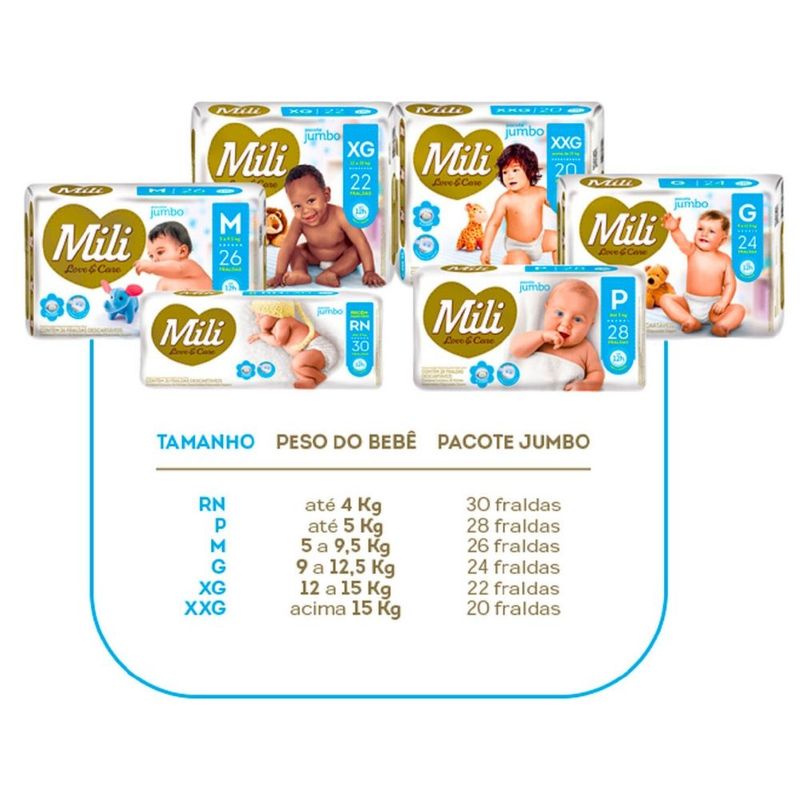 Fralda Descartável Mili Love & Care Linha Premium Tamanho: G (indicado para bebês de 9 a 12,5 kg) Quantidade: 1 Pacote com 24 fraldas Marca: Mili Fralda confeccionada pela moderna tecnologia Mili que vai atender as expectativas de quem procura o melhor para o seu bebe: qualidade, conforto e praticidade. A Mili Love & Care é uma fralda que vai surpreender você. Com até 12 horas de proteção, ela oferece todo o cuidado e suavidade que seu filho precisa para ficar sempre sequinho e confortável. A pele respira mais, a fralda se ajusta bem e o bebê se sente melhor. -Toque macio - Gel absorvente - Abas elásticas - Com extrato de algodão - deixa a pele respirar - Máxima proteção - 6 camadas que deixam o bebê protegido e sequinho Você dorme tranquila sabendo que seu baby está bem protegido!