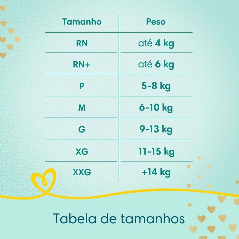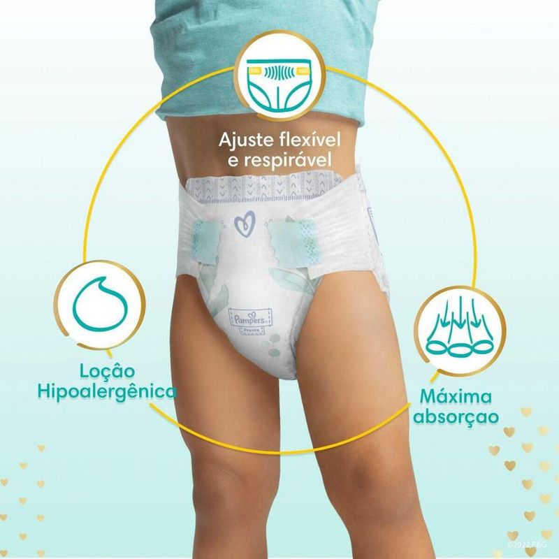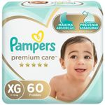 Fralda Descartável Pampers Premium Care Jumbo XG 60 UnidadesA Fralda Descartável Pampers Premium Care confere ao seu bebê pele sequinha, conforto e sensação de frescor durante todo o dia ou noite. Ela tem possui até 12 horas de absorção, sendo suave como o algodão e ultra respirável, com ajuste cômodo e flexível que se esticam e se ajustam aos movimentos do bebê. Desenvolvida com canais de ar e uma loção hipoalergênica exclusiva, a Fralda Descartável Pampers Premium Care proporciona uma pele seca e arejada, que ajuda a prevenir irritações.Modo de usar: Coloque o bebê sobre a fralda, desgrude as fitas e puxe-as, grude as fitas sobre a faixa decorada.