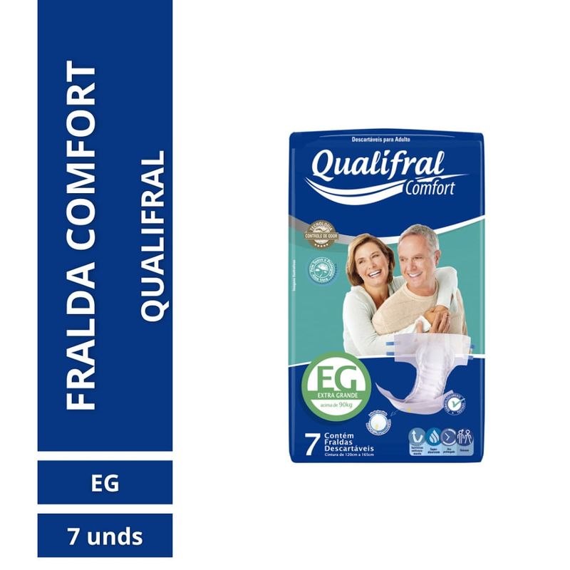 Fralda Geriátrica Descartável Qualifral Comfort EG 7 Unidades A Fralda Geriátrica Descartável Qualifral Comfort EG foi desenvolvida para oferecer proteção completa contra incontinência urinária leve, moderada ou intensa, garantindo conforto e segurança em qualquer hora do dia ou da noite. Sua tecnologia de ponta combina alta capacidade de absorção, barreiras antivazamento e controle antiodor, proporcionando uma experiência mais higiênica e tranquila. Com extrato de aloe vera, a fralda proporciona um toque suave e delicado à pele, ajudando a prevenir irritações. O indicador de umidade facilita o momento certo da troca, enquanto as fitas adesivas reposicionáveis permitem um ajuste personalizado e seguro, sem abrir mão da praticidade. Benefícios e Diferenciais Uso diurno e noturno com absorção de alto desempenho. Indicador de umidade para maior praticidade no cuidado. Barreiras antivazamento laterais para mais segurança. Tecnologia antiodor que neutraliza maus cheiros. Extrato de aloe vera para suavidade e proteção da pele. Fitas adesivas reposicionáveis que garantem melhor ajuste. Unissex, ideal para homens e mulheres. Informações Técnicas Marca: Qualifral Modelo: Comfort EG Tamanho: EG (extra grande) Quantidade: 7 unidades Indicação: Incontinência urinária leve, moderada ou intensa A Qualifral Comfort EG é a escolha ideal para quem busca qualidade, segurança e bem-estar no cuidado diário. Com ela, o usuário mantém sua liberdade, confiança e conforto em todos os momentos.