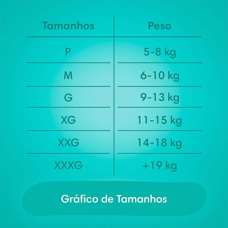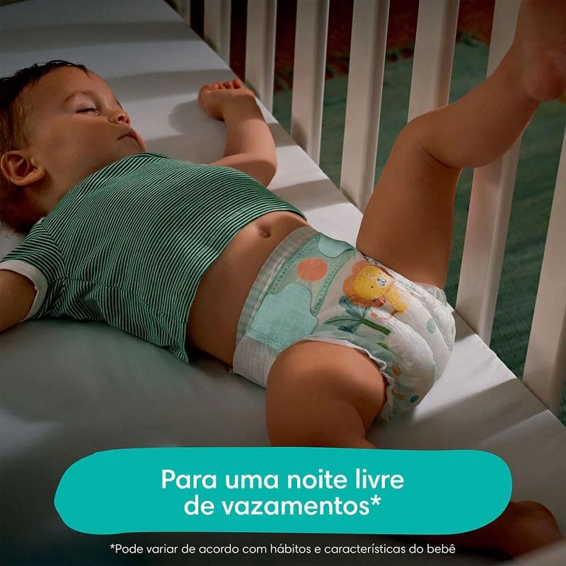 Fraldas Pampers Confort Sec XXG com 56 unidades Fralda Pampers Confort Sec com canais de ar exclusivos, que permitem que o ar circule livremente dentro da fralda, para o bumbum ficar menos abafado, e a pele arejada e sequinha durante a noite. Assim, essa fralda Pampers deixa seu bebê até duas vezes mais seco e arejado, quando comparado com fraldas concorrentes. Conheça toda a tecnologia por trás da fralda: Gel Mágico que absorve e retém a umidade no interior da fralda para noites mais sequinhasCamada ultra absorvente:absorve rapidamente a umidade mantendo a pele do bebê sequinha.Barreiras Anti Vazamento: se adaptam suavemente ao redor das pernas do seu bebê.Ajuste cômodo e flexível para dar uma proteção anti vazamentos todas as noites.Loção hipoalergênica: ajuda a prevenir irritações. Fralda Descartável Infantil Pampers Confort Sec – Proteção e Conforto para Noites Tranquilas A Fralda Pampers Confort Sec foi desenvolvida para fornecer máxima absorção e até 12 horas de proteção , garantindo noites mais tranquilas para o seu bebê. Com canais de ar inovadores , permite a circulação livre do ar dentro da fralda, mantendo a pele arejada e evitando o abafamento. Até 2x mais seco e arejado em comparação com fraldas comuns. Benefícios: Máxima absorção a noite inteira.Canais de gel superabsorventes para até 12 horas de proteção .Dupla barreira antivazamentos para evitar surpresas indesejadas.Ajuste flexível e confortável , adaptando-se perfeitamente ao corpinho do bebê.Fitas ultra resistentes para maior segurança e praticidade.Hipoalergênico , com loção protetora para ajudar a prevenir irritações na pele sensível. Como usar Fralda Pampers Confort Sec? Abra a fralda e posicione-a com as laterais para trás.Deite o bebê sobre a fralda aberta.Puxe as etiquetas laterais e cole na parte da frente, garantindo um ajuste confortável. Composição: Celulose, Polímero Superabsorvente, Polietileno, Polipropileno, Poliéster, Adesivos, Elásticos, Fragrância, Extrato de Aloe Barbadensis , Álcool Estearílico, Petrolato e D&C Verde N6. Por que escolher Pampers Confort Sec? Canais de Ar → Mantêm a pele do bebê sempre seca e confortável.Gel Mágico → Absorve e retém a umidade, garantindo noites mais tranquilas.Camada ultra absorvente → Mantém a pele sequinha por mais tempo.Antivazamento de barreiras → Adaptam-se suavemente ao redor das perninhas.Loção hipoalergênica → Protege contra irritações. Garanta noites mais tranquilas para o seu bebê com Pampers Confort Sec!