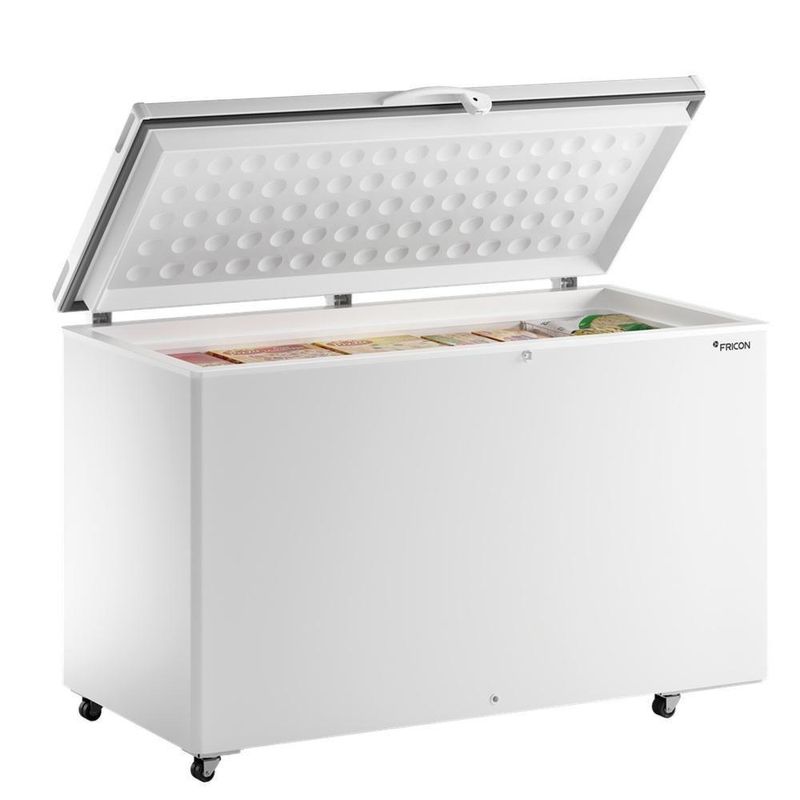 Freezer Conservador Horizontal Fricon 503 Litros Dupla Ação Tampa de Chapa Única Branco HCED 503 C 110VProjetado para oferecer alta performance e versatilidade, o Freezer Horizontal 503L é ideal para a conservação de produtos congelados, refrigerados e bebidas, atendendo às necessidades de estabelecimentos comerciais, cozinhas profissionais e uso residencial intensivo.Conta com refrigeração estáticaQue proporciona uma uniforme da temperatura e maior conservação dos alimentos. A faixa térmica vai de -22°C a -18°C no modo freezer e até 0°C a +8°C no modo refrigerador, oferecendo flexibilidade de uso conforme a necessidade.Equipado com a moderna tecnologia Skin CondenserSem microventilador, o aparelho é mais silencioso, consome menos energia e requer menos manutenção.Degelo é manualFacilitando a limpeza e garantindo maior controle do usuário.Para facilitar a movimentaçãoO equipamento possui rodízios duplos giratórios de alta resistência, ideais para ambientes com alto fluxo e mudanças frequentes de layout.Especificações Técnicas:Capacidade Total: 503 LitrosModelo: HCED 503 CMarca: FriconCor: BrancoVoltagem: 127V ou 220V (Não é bivolt)Tipo de Refrigeração: EstáticaConsumo de energia: 3,69 kWh/diaDobradiças balanceadas: SimRodízio duplo giratório de alta resistência 360°: SimGrade plástica em material de alta resistência a impacto com proteção UV: SimGás refrigerante: R-290Degelo: ManualTemperatura de operação: -22°C a -18°C (freezer) / 0°C a +8°C (refrigerador)Dimensões e Peso do Produto:Altura: 93,9 cmLargura: 150,2 cmProfundidade: 70,1 cmPeso: 66 kgGarantia:02 Anos (Sendo 3 meses de garantia legal e mais 21 meses de garantia para de fabricação).