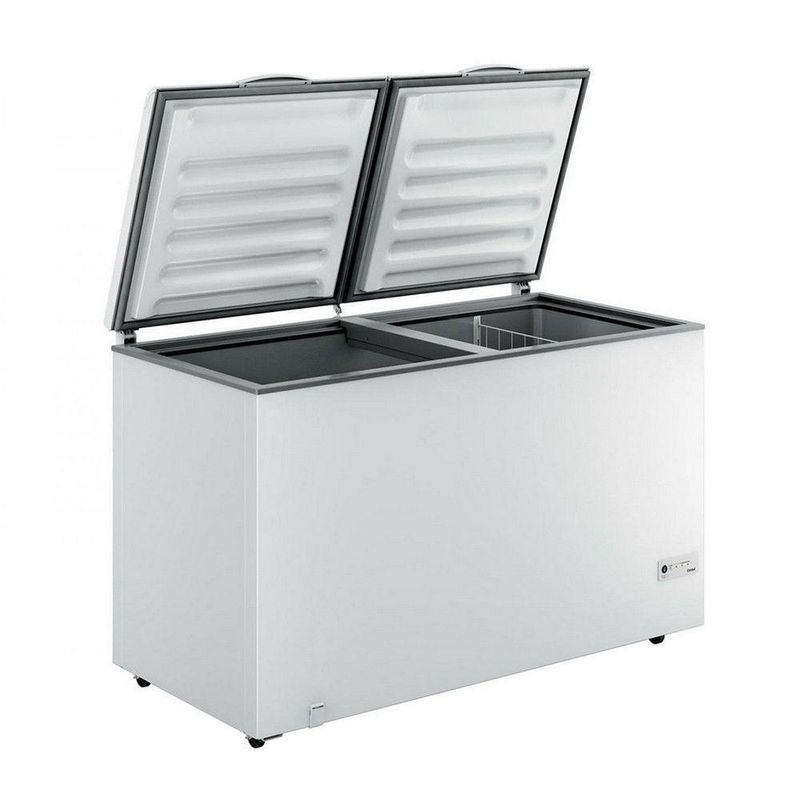 Freezer Horizontal 2 Tampas 534 Litros Com Rodas Chb53 Consul Branco 220vFreezer Horizontal 2 Tampas 534 Litros com Rodas CHB53 ConsulO Freezer Vertical Consul CHB53 possui capacidade para 534L possui controle eletrônico, para você programar a temperatura facilmente. Flexível, permite escolher entre os modos freezer ou refrigerador. Possui duas portas, para facilitar a organização dos alimentos, e dreno frontal, que permite recolher o gelo derretido com uma vasilha. Conta com 4 rodinhas nos pés e é super econômico, pois tem classificação energética A, além do interior feito com liga metálica de alta resistência à corrosão.Dimensões:Altura: 96 cmLargura: 147,3 cmProfundidade: 78 cmPeso: 68 kgGarantia do fornecedor: 12 mesesCor: Branco Voltagem: 220V