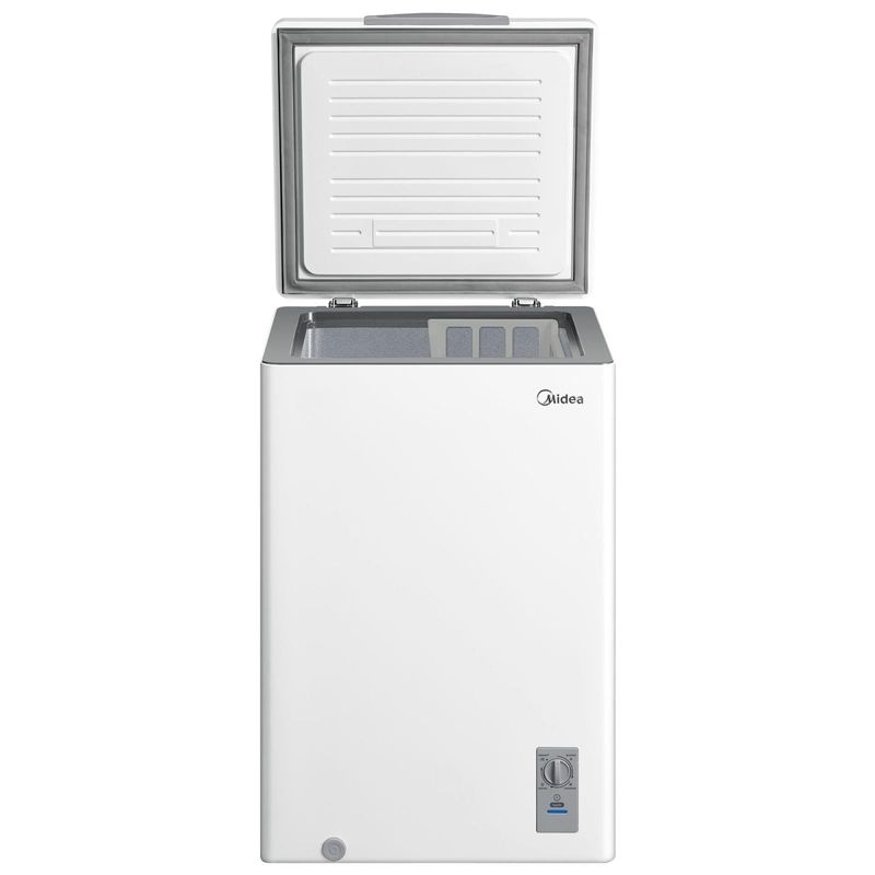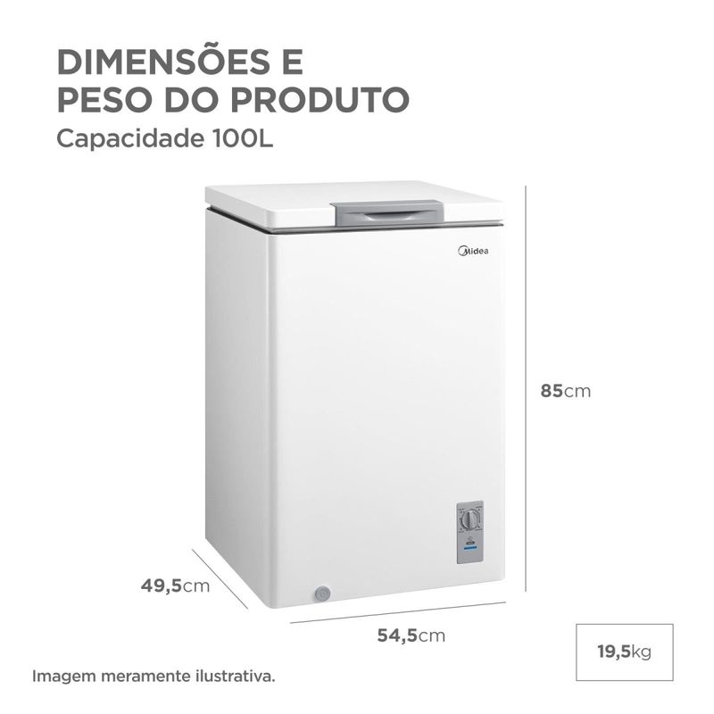 Freezer Horizontal Midea 100L Inverter + Bivolt + 3 em 1 + Novo A + Extra FrioO Freezer Horizontal Midea 100L Inverter é a solução definitiva para quem busca desempenho superior e versatilidade em um formato compacto. Graças à tecnologia Inverter, ele proporciona um resfriamento muito mais rápido, mantém a temperatura estável e opera de forma extremamente silenciosa, garantindo a classificação Novo A de eficiência energética.Com sua exclusiva função 3 em 1, você tem total flexibilidade para ajustar o equipamento conforme a sua necessidade, operando nos modos Resfriar, Conservar ou Freezer com uma amplitude térmica que vai de $10°C$ até $-28°C$. Além disso, a tecnologia Flexi Volt garante o funcionamento perfeito tanto em 127V quanto em 220V, eliminando preocupações com a voltagem da sua região.O design interno inteligente inclui um novo cesto de armazenagem para melhor organização dos alimentos e um acabamento em alumínio de alta durabilidade. Ecologicamente correto, utiliza o gás R600a, que não agride a camada de ozônio. Para sua total tranquilidade, a Midea oferece uma garantia de 10 anos no compressor Inverter, assegurando a qualidade e longevidade do seu investimento.Tecnologia Inverter: Maior economia de energia e baixo nível de ruído.Função 3 em 1: Versatilidade para resfriar, conservar ou congelar alimentos.Flexi Volt: Liberdade para ligar em tomadas 127V ou 220V.Super Freezer: Alcance temperaturas baixas em menos tempo para maior eficiência.10 Anos de Garantia: Proteção estendida para o compressor Inverter.Dreno Frontal: Facilidade total no momento do degelo manual e limpeza. Que tal aproveitar e completar sua cozinha com um belo fogão para lhe ajudar em todos os momentos? Aproveite!