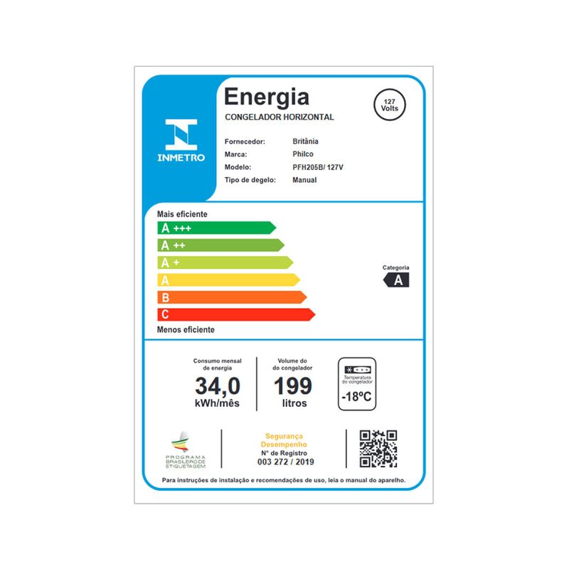 Mais economia e qualidade, com a praticidade que você merece! O Freezer horizontal PFH205B da Philco possui puxador com trava de segurança, facilitando no manuseio e maior segurança. Equipado com dreno para maior praticidade no descongelamento, ou seja, a água escoa pelo dreno e facilita seu recolhimento. Além disso o Freezer é livre de CFC, ecologicamente correto. Possui cesto aramado, facilitando a organização dos alimentos. O Freezer horizontal PFH160B da Philco contém dupla função, muito versátil, em que pode ser usado como congelador ou refrigerador. Além de toda praticidade, pois possui rodinhas para deslocamento, facilitando a movimentação do produto. Com classificação energética A, ele conta com maior economia de energia e uma generosa capacidade de 199 litros. É maior capacidade e melhor aproveitamento do espaço. Muito mais praticidade e qualidade você encontra no Freezer Horizontal PFH160B!.Sistema Dupla Função: Pode operar na função freezer ou refrigerador;Maior Capacidade e melhor aproveitamento de espaço;Controle de temperatura no painel frontal;Sistema de refrigeração por compressor;Classificação energética 127V A+ e 220V A++;Gás refrigerante R600a;Dreno frontal, facilitando o degelo e limpeza do produto;Degelo Manual;Volume Interno 199 litros;Compressor ON-OFF