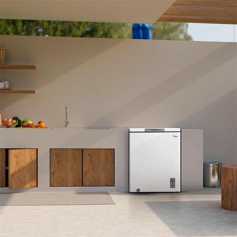 Freezer Midea Horizontal 145L 1 Porta Branco 220V (MDRC207SLA012) - Armazene e congele alimentos no mesmo equipamento com 145L de capacidadeO Freezer Horizontal Midea 145L é ideal para quem precisa preservar alimentos de forma prática e eficiente. Compacto, adapta-se facilmente a ambientes menores, oferecendo versatilidade no dia a dia.Graças às suas funções ajustáveis, pode ser utilizado como freezer, com temperaturas entre -24°C e -12°C, ou como refrigerador, variando de 0°C a 10°C. O cesto removível facilita a organização interna, enquanto o dreno frontal torna o degelo mais simples.Com baixo consumo de energia e classificação A, garante economia e desempenho sem abrir mão da qualidade.Praticidade e eficiência para armazenar alimentos de acordo com a sua necessidade.Especificações técnicasMarca: MideaModelo: Freezer Midea 145LVoltagem: 220VCor: BrancoCor interna: Prata Tipo: Freezer HorizontalUso Recomendado: Residencial / ComercialCapacidade Total: 145 litrosTemperatura de Freezer mínima: -24°C e máxima -12°CTemperatura de refrigerador mínima: 0°C e máxima 10°CDegelo: ManualConsumo de Energia: 21 kWh/mês Classificação energética: A ++Fluido Refrigerante: R600aControle de Temperatura: Termostato mecânicoDisplay: Não possuiIluminação Interna: Não possuiCesto de armazenagem: Sim, 1Espátula de gelo: Sim, 1.Puxador: SimDreno: FrontalLuz Indicadora de Funcionamento: Sim Pés: 2 rodízios somente na base do compressorAlarme de Porta Aberta: NãoTrava de Segurança: NãoFunções: Resfriar, Conservar e FreezerMaterial Externo: Aço galvanizadoMaterial Interno: AlumínioDimensões do produto embalado: 66,5 L x 88,8 A x 57,8 P cmPeso bruto: 26,5kgDimensões do produto: 62,8 L x 85 A x 56,2 P cmPeso: 25,4kgGarantia: 12 meses