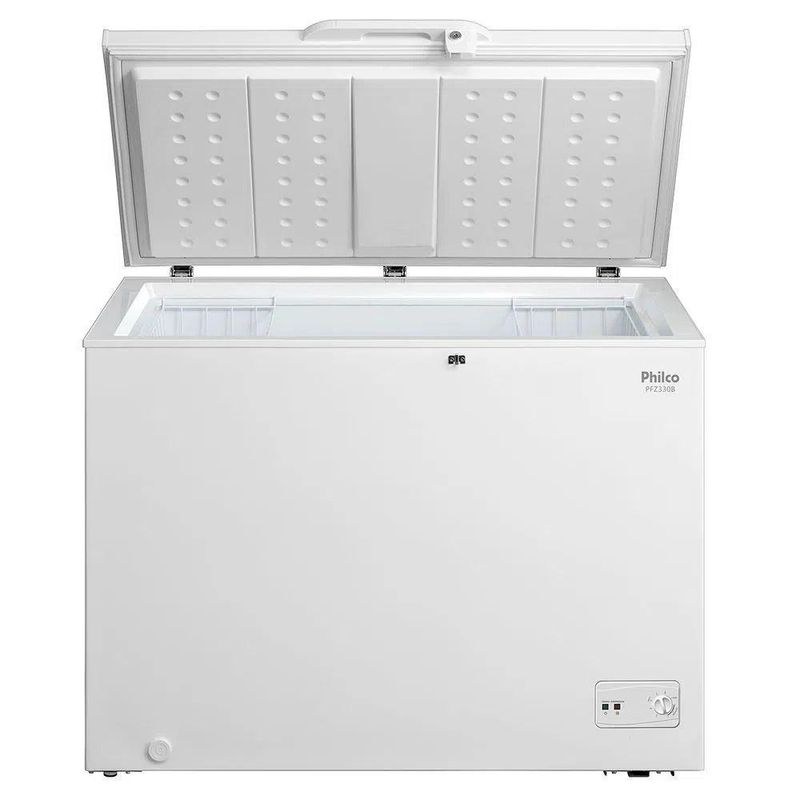 Freezer Philco Horizontal PFH300B 299 Litros Refrigerador Branco 220VO Freezer Philco Horizontal PFH300B é 2 em 1: congelador ou refrigerador! Com 9 níveis de temperatura e capacidade para 299 litros, maior capacidade e melhor aproveitamento do espaço. Com cesto aramado, que facilita a organização dos alimentos. Possui dreno, maior praticidade no descongelamento, pois a água escoa pelo dreno facilitando seu recolhimento. Livre de CFC, ecologicamente correto possui classificação energética A, ou seja, mais econômico. E para sua maior comodidade, possui rodinhas para deslocamento, facilitando a movimentação do produto.Caracteristicas: Maior Capacidade e melhor aproveitamento de espaçoControle de temperatura ajustável no painel frontalSistema Dupla Função: Pode operar na função freezer ou refrigerador, conforme ajuste do termostatoTemperatura interna de operação modo refrigerador de + 5°C a - 1°CTemperatura interna de operação modo freezer de -5°C a -23°CSistema de refrigeração por compressor4 rodas para deslocamento, facilitando a movimentação do produtoDreno frontal, facilitando o degelo e limpeza do produtoDegelo ManualChave de Segurança, permite trancar o freezer se necessárioSistema de refrigeração que opera com compressor hermético, proporcionando maior capacidade de refrigeração.Especificações Técnicas:Marca: PhilcoModelo: PFH300BVoltagem: 220VCapacidade: 299 litrosClassificação energética: AGás refrigerante: R600aDimensões Aproximadas do Produto (LxAxP): 109 cm x 84 cm x 61,5 cmPeso Aproximado: 35kgGarantia: 12 meses contra defeitos de fabricação, de acordo com as normas do fabricante.