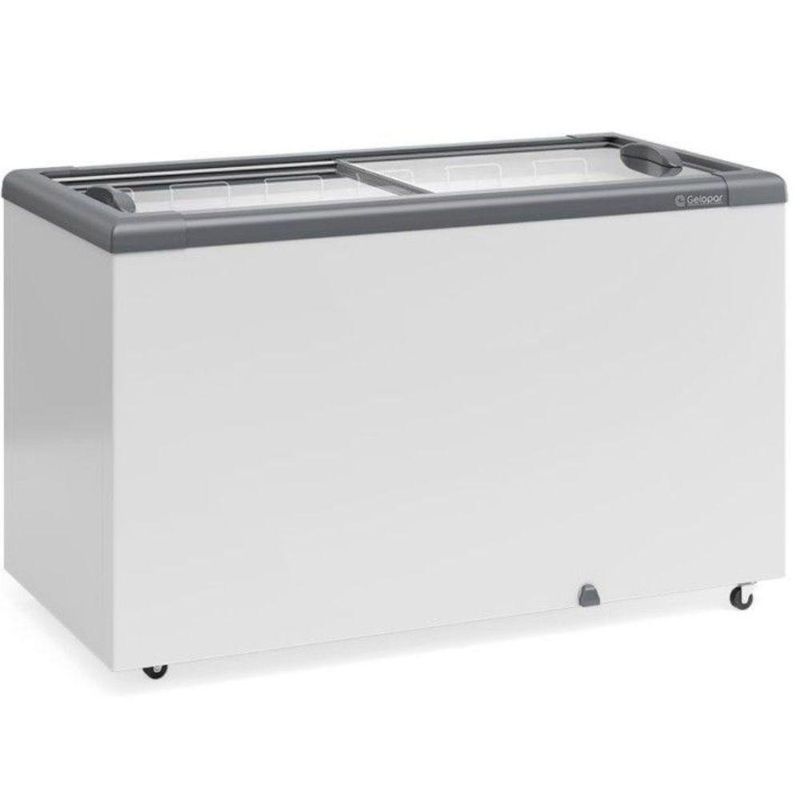 Freezer Plano Vidro Reto Deslizante Com Led Ghd400l Gelopar Expositor 395 Litros Cinza 110vConservador Plano Vidro Reto Deslizante 395L GHD400L Gelopar. Conservação e exposição de sorvetes e produtos congelados. Temperatura: -16° a -20°C. Refrigeração: Estática com serpentina. Unidade condensadora com ar forçado. Controle de Temperatura: Termostato. Degelo: Manual. Colarinho em ABS com cabeceiras injetada. Tampas: Vidros temperados, deslizantes e baixo emissivo. Revestimento: Interno e externo em Aço pré-pintado branco. Iluminação LED. Dreno frontal com tampa. Gabinete com rodízios. CAPACIDADE: 395L. CONSUMO: 3,17kWh/dia. CAPACIDADE DE CESTOS: 6. PESO: 62kg. DIMENSÕES EXTERNAS(CxAxL): 136,5x85,5x68,7cm. Equipamento certificado conforme Portaria Inmetro nº 371/2009. Conservador Plano Vidro Reto Deslizante 395L GHD400L Gelopar é na Atau.Marca - GeloparModelo - GHD400LCZCapacidade - 395 LitrosFrente - 136,5cmAltura - 85,5cmProfundidade - 68,7cmTemperatura - Congelados -16 a -20C/ Resfriados 0 a +7CPeso - 62kgPortas - 2 Portas