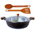 Frigideira Cereja Alumínio Fundido Usinado Talher 05 AM 30cm A linha de caçarolas usinadas se destacam pelo brilho interno das peças, resultante do processo da fabricação de alta qualidade. As caçarolas usinadas são fabricadas em alumínio fundido. Esse material é muito popular por oferecer um excelente custo benefício e por permitir um design versátil e prático, são muito procuradas pois possuem um preço competitivo e tem maior durabilidade. Faça seus alimentos mais saudáveis e saborosos com nossas caçarolas usinadas. Especificações Técnicas: Revestimento Externo: Alumínio Fundido Cereja.Revestimento Interno: Diamantado/Usinado.Alça Madeira Tampa de Vidro.Diâmetro: 30cm.Peso: 2,05kg.Altura: 9cm. Especificações Técnicas Talheres:Modelos: Colher de Arroz e Espátula.Medidas: 28cm (Todos os modelos).Material: Nylon.Cor: Laranja. Itens Inclusos:01 Frigideira Cereja Alumínio Fundido Usinado Talher 05 AM 30cm.01 Tampa de Vidro Temperado Avulsa 30cm. 02 Talheres em Nylon Antiaderente Laranja. Código: 498eT05JAV.ProdutoLojaPlast.
