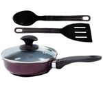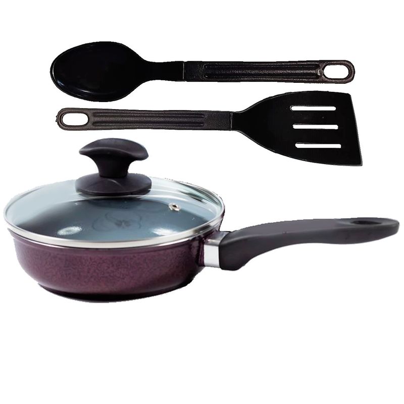 Frigideira Cereja Antiaderente em Cerâmica Talher 02 CB 24cm A frigideira antiaderente é fabricada com outros materiais e ganham uma cobertura em cerâmica, garantindo assim um revestimento atóxico e antiaderente, capaz de repelir certas substâncias. Por isso, a comida não gruda nela. É resistente a altas temperaturas e a arranhões. As panelas em cerâmica antiaderente contam com uma camada que cobre o seu material e evita que o alimento grude em seu interior. Dessa forma, contribuem para uma culinária saudável, dispensando o uso excessivo de gordura ou óleos vegetais. Para quem gosta de um peixe ou filé de frango grelhado, ou não dispensa uma omelete delicioso, não pode deixar de ter uma em sua cozinha. Manutenção e Dicas: 1. Não use metal na sua panela de cerâmica.2. Evite grandes mudanças de temperatura. (Levar uma panela quente para a água fria pode fazer com que a panela deforme.)3. Limpe suas panelas com esponjas que não causem riscos.4. Não é ideal para máquina lava louças.5. Evite altas temperaturas de cozimento.6. Não deixe a panela vazia no fogo. Especificações Técnicas:Revestimento Interno: Antiaderente em Cerâmica cor Cinza.Revestimento Externo: Alumínio Fundido Cereja.Cabo de Baquelite Tampa de Vidro..Litragem: 3,6L.Largura: 24cm.Peso: 1,55Kg.Altura: 10cm. Especificações Técnicas Talheres:Modelos: Colher de Arroz e Espátula.Medidas: 28cm (Todos os modelos).Material: Nylon.Cor: Preto. Itens Inclusos:01 Frigideira Cereja Antiaderente em Cerâmica Talher 02 CB 24cm.01 Tampa de Vidro Temperado Avulsa 24cm. 02 Talheres em Nylon Antiaderente Preto. Código: 765eT02JAV. Produto plataforma Plast.