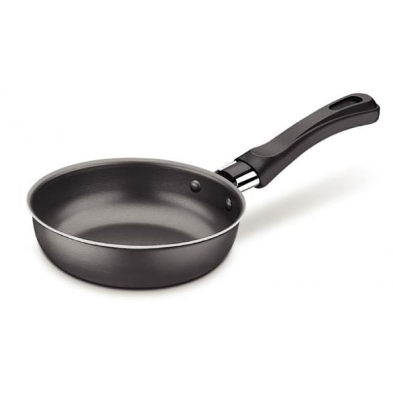 Perfeita para o preparo de ovos, ela é produzida em alumínio com revestimento interno e externo de antiaderente Starflon T1, que garante que os alimentos não grudem e facilita a limpeza. Possui cabo em baquelite antitérmico, que protege suas mãos contra queimaduras e torna seu manuseio muito mais seguro. É a frigideira certa para sua cozinha! Características Gerais - Frigideira com revestimento interno e externo em antiaderente Starflon - Cabo com furo passante para pendurar o produto - Pode ser utilizada no fogão a gás, elétrico e vitrocerâmico - Capacidade: 0,4 litros - Diâmetro: 13 cm Altura: 25 cm Largura: 6 cm Profundidade: 14 cm Marca: Tramontina Modelo: Turim Cor: Preto Modelo: 20182/013 Conteúdo da Embalagem: 1 Frigideira para ovo Tramontina Produto com certificação compulsória certificada pelo SGS 0040, registro 001793/2018, modelo frigideira e classificação de antiaderência A (ótima), conforme portaria INMETRO 419/2012. Garantia do produto: 90 dias de garantia de acordo com o Código de Defesa do Consumidor + a Garantia do Fabricante.
