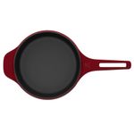 Versatilidade para explorar sua criatividade culinária.A Electrolux traz para você a nova Frigideira de Ferro Fundido Esmaltado Electrolux Expert. Experimente todo o protagonismo de um design exclusivo, além da alta qualidade no preparo de suas receitas e uma longa durabilidade de uso, tornando seus momentos na cozinha ainda mais especiais.Feita de ferro fundido, tem propriedades térmicas como distribuir o calor de forma homogênea, o que ajuda a preparar os alimentos com mais eficiência. Além disso, consegue reter o calor, fazendo com que a comida se mantenha aquecida durante toda a refeição.O esmalte vitrificado reveste toda a frigideira, conferindo um acabamento contemporâneo e sofisticado, além de oferecer mais resistência contra riscos e ferrugem, prolongando a vida útil por gerações.A Frigideira de Ferro Fundido Esmaltado Electrolux Expert é ideal para preparos rápidos, como ovos, omeletes, bacon, tapiocas, panquecas, pizzas e carnes grelhadas.VERSATILIDADE Para explorar a criatividade na cozinha. Podem ser usadas em diferentes eletrodomésticos como: freezer, geladeira, cooktop de indução e a gás, forno elétrico e a gás, fogão e lava-louças.PEGADORES DE SILICONE 2 EM 1 Mais conforto e segurança no manuseio Com design exclusivo Electrolux foram desenvolvidos para se adaptarem às alças das panelas, garantindo segurança no manuseio e proteção ao calor. Possuem também a função de descanso para talheres.Temperatura máxima: 230 °C* *Os pegadores de silicone não devem ser levados ao forno junto com a panela.CARACTERÍSTICAS PRINCIPAIS· Design exclusivo· Durabilidade· Esmalte vitrificado· Perfeita distribuição do calor· Conforto e segurança· Cozimento perfeito· Fácil de limparInformações técnicas 01 Frigideira de Ferro Fundido Esmaltado Electrolux 26 cm 02 Pegadores de SiliconeCor: Vermelha Esmaltada Material: Ferro Fundido Tamanho: 26 cm
