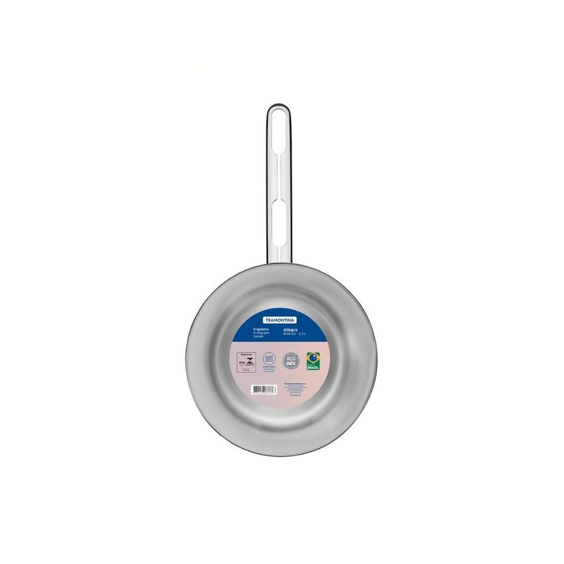Frigideira em Aço Inox Allegra 20 cm Fundo Triplo Tramontina As atividades na cozinha vão ficar muito mais fáceis com a Frigideira Tramontina Allegra em Aço Inox com Fundo Triplo 20 cm de diâmetro. Projetada para facilitar o dia-a-dia das tarefas de forno e fogão, ela é altamente durável e higiênica. Possui 20 cm de diâmetro, ideal para preparação das suas melhores receitas. Totalmente produzida em aço inox, possui tecnologia de fundo triplo (aço inox + alumínio + aço inox) distribuindo o calor de forma uniforme, cozinhando os alimentos mais rápido. Muito funcional e versátil, ela pode ir ao forno para gratinar ou finalizar pratos e ser utilizada em diferentes tipos de fogões. Não só é muito prática para cozinhar, como ainda possui um design diferenciado e moderno, que embeleza e dá um toque charmoso ao ambiente devido seu acabamento em alto brilho. Uma peça sofisticada que facilita sua vida. Descrição do produto Marca: Tramontina Material: Aço Inox Revestimento Interno: Inox Linha comercial: Allegra Diâmetro: Ø 20 cm Máquina de Lavar Louça: Sim Imagens meramente ilustrativas, todos os itens que ambientam o produto não estão inclusos.