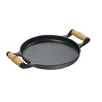 Frigideira Ferro Fundido com Alças de Madeira Sem Tampa 22cm A frigideira em ferro fundido sem tampa é muito utilizada por bares e restaurantes por oferecer maior resistência para altas temperaturas, além de ser fácil de limpar, não descasca, dura por muito mais tempo e é muito prática de usar. Tem boa apresentação e por manter-se quente por muito tempo é ideal para fazer suas refeições prediletas, como bifes, carnes suculentas, parmegianas, legumes, espaguetes, entre outras culinárias. A linha de ferro fundido apresenta uma grande versatilidade, pois tem o fundo plano e maior área de contato com a fonte de calor. Pode ser utilizado em todos os tipos de fogão a gás, a lenha, elétrico e também em cooktop de indução. Especificações Técnicas: Material: Ferro Fundido. Diâmetro: 22cm. Peso: 1,759Kg. Altura: 2cm. Itens Inclusos: 01 Frigideira Ferro Fundido com Alças de Madeira Sem Tampa 22cm. Código: 92599-LB.