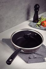 A frigideira funda Tramontina com tampa Sicília em alumínio com revestimento interno e externo em antiaderente Starflon Excellent avelã 24 centímetros de diâmetro 2,5 litros é a escolha ideal para fazer frituras de imersão, como batatas fritas para acompanhar aquele bife delicioso. Desenvolvida com corpo em alumínio com revestimento antiaderente Starflon Excellent, ela propociona o cozimento dos alimentos de maneira rápida e uniforme, além de evitar que eles grudem em sua superfície. Seu cabo é em baquelite antitérmico e proporciona um manuseio muito mais confortável e seguro, pois não aquece. Ela ainda é muito fácil de limpar e pode ser levada à máquina de louças, otimizando suas tarefas na cozinha. Uma frigideira de alta qualidade, durável e não prejudicial a saúde, perfeita para completar sua cozinha!Descrição técnicaCorpo de alumínio com espessura de 3,0 mm que proporciona cozimento rápido e uniforme. Revestimento interno e externo de antiaderente Starflon Excellent que não gruda, é fácil de limpar, mais durável, não é prejudicial a saúde e é livre de PFOA.Tampa de vidro temperado, com saída de vapor e borda de aço inox. Cabo e pegador de baquelite antitérmico que oferecem segurança durante o manuseio. Pode ir à máquina de lavar louças facilitando seu dia a dia.Orientação GeralA capacidade volumétrica máxima para cozimento é de 3/4 da capacidade total da peça. Posicione o cabo do utensílio voltado ao centro do fogão. Em fogões com grade, centralize a peça e alinhe o cabo com a grade. Utensílios quentes devem estar fora do alcance das crianças. Este produto não pode sofrer modificações. Antes do primeiro uso, lave com esponja macia, sabão neutro ou detergente líquido. Depois de secar, unte a área interna com óleo ou gordura e leve ao fogo por um ou dois minutos. Deixe esfriar e lave novamente. Seu utensílio Starflon está pronto para uso com ou sem gordura, sempre em fogo baixo ou médio (nunca superior a 260ºC). Para mexer os alimentos use somente utensílios de silicone, nylon ou madeira.Limpeza: Evite a imersão do utensílio quente em água fria.Nunca utilize produtos abrasivos na lavagem. Se deixar queimar alimentos, umedeça a área e reserve até que possa remover os resíduos grudados com esponja e sabão. Para descarte do produto e embalagem siga as orientações de reciclagem vigentes. Este produto não necessita de manutenção, apenas limpeza.Garantia do produto: 90 dias de garantia de acordo com o Código de Defesa do Consumidor + a Garantia do FabricanteProduto com certificação compulsória certificada pelo OCP 0070, registro 009648/2019, modelo frigideira e classificação de antiaderência A (ótima), conforme portaria INMETRO 419/2012.