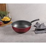 Frigideira Funda Tramontina Versalhes em Alumínio com Antiaderente Starflon Max Vermelho 28 cm 4,9 L Tramontina - Frigideira Funda Tramontina Versalhes em AlumÃnio com Antiaderente Starflon Max Vermelho 28 cm 4,9 L Leve mais cor e praticidade para sua cozinha com a frigideira funda Tramontina Versalhes em alumÃnio com revestimento interno e externo em antiaderente Starflon Max vermelho 28 centÃmetros de diâmetro e 4,9 litros de capacidade. Ideal para receitas maiores, ela tem corpo de alumÃnio que distribui o calor de forma rápida e uniforme, garantindo preparos no ponto certo e sem grudar. O revestimento antiaderente Starflon Max é durável, fácil de limpar e livre de substâncias que podem prejudicar a saúde. O cabo de baquelite antitérmico oferece manuseio confortável e seguro. E para completar, ela ainda pode ir à máquina de lavar louças, trazendo mais praticidade ao seu dia a dia. Corpo de alumÃnio com espessura de 1,6 mm que proporciona cozimento rápido e uniforme. Revestimento interno e externo de antiaderente Starflon Max que não gruda, é fácil de limpar, mais durável e não é prejudicial à saúde, pois é livre de PFOA.Cabo de baquelite antitérmico que oferece segurança durante o manuseio. Pode ir à máquina de lavar louças facilitando seu dia a dia.Pode ser utilizada nos fogões: gás, elétrico e vitrocerâmico - resistência elétrica. Cuidados com o produto A capacidade volumétrica máxima para cozimento é de 3/4 da capacidade total da peça. Posicione o cabo do utensÃlio voltado ao centro do fogão. Em fogões com grade, centralize a peça sobre a chama ou fonte de calor e alinhe o cabo com a grade.UtensÃlios quentes devem estar fora do alcance das crianças.Antes do primeiro uso, lave com esponja macia, sabão neutro ou detergente lÃquido. Depois de secar, unte a área interna com óleo ou gordura e leve ao fogo por um ou dois minutos. Deixe esfriar e lave novamente. Seu utensÃlio Starflon está pronto para uso com ou sem gordura, sempre em fogo baixo ou médio (nunca superior a 260 °C). Para mexer os alimentos use somente utensÃlios de silicone, nylon ou madeira. Este produto não necessita de manutenção, apenas limpeza. Limpeza: Evite a imersão do utensÃlio quente em água fria. Nunca utilize produtos abrasivos na lavagem. Se deixar queimar alimentos, umedeça a área e reserve até que possa remover os resÃduos grudados com esponja e sabão. Para descarte do produto e embalagem siga as orientações de reciclagem vigentes. Garantia 90 dias para vÃcios ou defeitos de fabricação. - - Características Gerais do Produto: Garantia: • 3 Meses