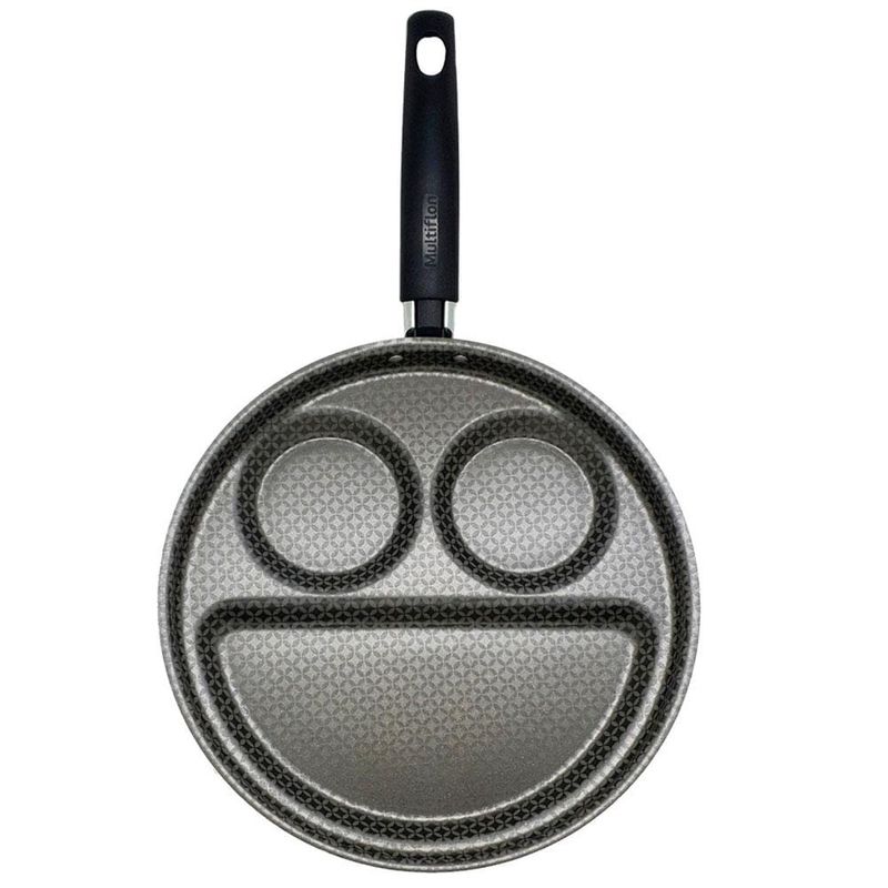A Frigideira Breakfast é a solução perfeita para seu café da manhã, pois possui duas cavidades para fritar ovos e 1 cavidade para fritar o bacon. Além de ser lindas são produzidas em alumínio antiaderente o que permite fazer seus preparos sem a utilização de óleo. É revestida com exclusivo ANTIADERENTE MULTIFLON ULTRA7, desenvolvido para uso nos produtos Multiflon®, ULTRA7 é um revestimento antiaderente extremamente resistente estudado para uso superintenso, o selo ULTRA7 é garantia de alta qualidade em antiaderência e resistência, livre de PFOA. Conta ainda com cabo em baquelite resistentes a altas temperaturas; fundo retificado com efeito antideslizante oferecendo mais segurança no manuseio.