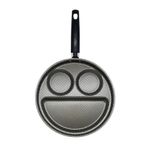 A Frigideira Breakfast é a solução perfeita para seu café da manhã, pois possui duas cavidades para fritar ovos e 1 cavidade para fritar o bacon. Além de ser lindas são produzidas em alumínio antiaderente o que permite fazer seus preparos sem a utilização de óleo. É revestida com exclusivo ANTIADERENTE MULTIFLON ULTRA7, desenvolvido para uso nos produtos Multiflon®, ULTRA7 é um revestimento antiaderente extremamente resistente estudado para uso superintenso, o selo ULTRA7 é garantia de alta qualidade em antiaderência e resistência, livre de PFOA. Conta ainda com cabo em baquelite resistentes a altas temperaturas; fundo retificado com efeito antideslizante oferecendo mais segurança no manuseio.