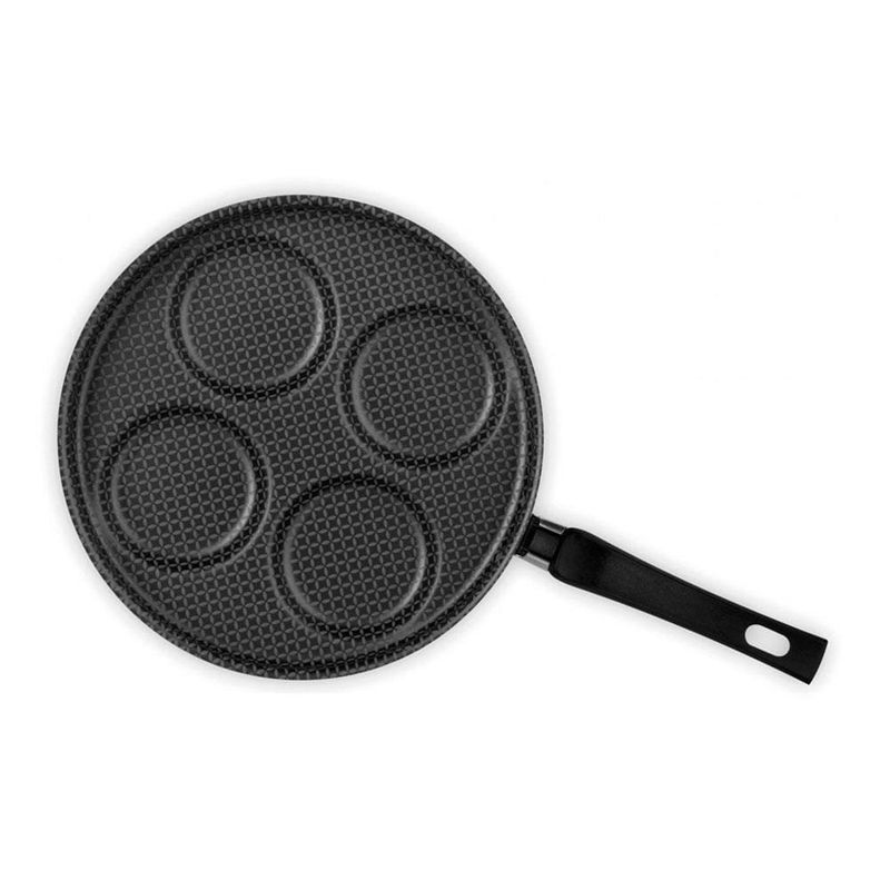 A Frigideira Quatro Ovos, como o próprio nome diz, permite o preparo da refeição de toda a família em poucos minutos. Produzida em alumino e os alimentos não grudam, cozinham de forma mais rápida e uniforme, e ficam mais saudáveis, pois precisam de pouquíssima quantidade de óleo durante o preparo. Com cabos fabricados em baquelite antitérmico que não aquecem durante o uso, e são livres de PFOA pois contam com ausência de elementos nocivos à saúde, garantindo segurança, saúde e proteção na hora de cozinhar.