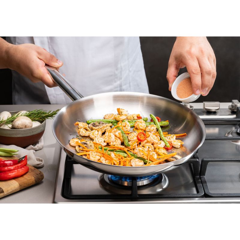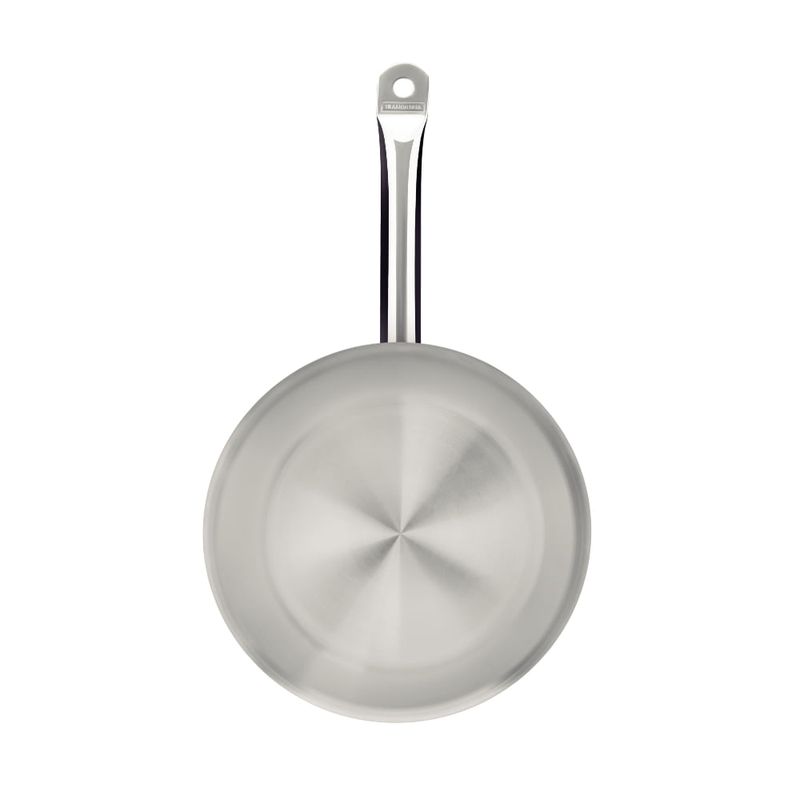 Frigideira Tramontina Professional Rasa: Desempenho e Durabilidade na CozinhaA Frigideira Tramontina Professional Rasa é a escolha ideal para quem busca excelência no preparo de alimentos. Com fundo triplo, garante cozimento uniforme e eficiente, elevando suas criações culinárias.Desenvolvida para chefs e entusiastas, esta frigideira de 26 cm de diâmetro e 2,2 litros é perfeita para selar carnes, refogar vegetais e uma vasta gama de pratos. Seu corpo robusto em aço inox de alta qualidade assegura durabilidade, resistência e facilidade de limpeza, tornando-a indispensável para qualquer cozinha.DiferenciaisCozimento Uniforme: O fundo triplo (aço inox + alumínio + aço inox) distribui o calor de maneira homogênea, garantindo que seus alimentos cozinhem por igual.Versatilidade: Ideal para selar, refogar e dourar, adaptando-se a diversas técnicas culinárias.Durabilidade Excepcional: Fabricada em aço inox premium, é resistente a impactos, corrosão e altas temperaturas, assegurando longa vida útil.Cabo Ergonômico: O cabo tubular em aço inox proporciona manuseio seguro e confortável, resistente ao calor.Mais sobre o ProdutoCompatibilidade Total: Pode ser utilizada em fogões a gás, elétricos, vitrocerâmicos e de indução.Culinária Saudável: O aço inox é higiênico, não libera resíduos e preserva o sabor original dos alimentos.Design Profissional: Com acabamento polido, adiciona um toque de sofisticação à sua cozinha.Fácil de Limpar: A superfície lisa do aço inox facilita a limpeza, tornando o pós-preparo prático.Dicas de UsoPré-aquecimento: Aqueça a frigideira em fogo baixo a médio antes de adicionar os alimentos.Uso de Gordura: Utilize uma pequena quantidade de óleo ou gordura para selar e evitar que grudem.Utensílios Adequados: Prefira utensílios de silicone, nylon ou madeira para evitar arranhões.Recomendações de Limpeza/ManutençãoLavagem: Lave com água morna, esponja macia e detergente neutro imediatamente após o uso.Manchas: Para manchas difíceis, use pasta de bicarbonato de sódio e água, esfregando suavemente.Secagem: Seque completamente após a lavagem para evitar manchas de água e preservar o brilho.Evite Abrasivos: Não utilize palhas de aço ou produtos abrasivos que possam danificar o acabamento.Ficha TécnicaMarca: TramontinaNome: Frigideira Tramontina Professional Rasa em Aço Inox Fundo Triplo com Cabo 26 cm 2,2 LEAN: 7891116186008Código de Referência: 62633260Material: Aço InoxCor: Prata (Aço Inox Polido)Tipo de Produto: Frigideira Rasa ProfissionalFonte de Energia: N/A (Uso em Fogão)Capacidade: 2,2 LitrosDiâmetro: 26 cmAjustes Específicos: Fundo TriploCompatibilidade: Todos os tipos de fogão (Gás, Elétrico, Vitrocerâmico, Indução)Outros Dados Técnicos Relevantes: Cabo Tubular em Aço Inox