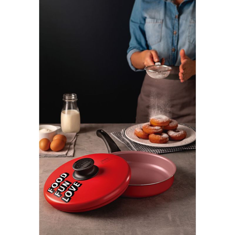 A Frigideira Reta Tramontina My Lovely Kitchen em Alumínio Vermelho com Revestimento Interno Antiaderente Rosa Starflon Max com Cabo Baquelite 24 cm de diâmetro 2 litros vai proporcionar uma das experiências mais especiais em sua cozinha. Perfeita para preparar as mais gostosas receitas, como aquela deliciosa batata suíça, ela é produzida em alumínio e conta um revestimento interno antiaderente Starflon Max. Essas características fazem com que ela cozinhe os alimentos de maneira uniforme e evita que eles grudem em sua superfície, sendo assim, muito fácil de limpar e não prejudicial à sua saúde. Ela acompanha tampa para auxiliar no preparo das suas receitas e possui cabo em baquelite antitérmico que torna o manuseio muito mais agradável. Sua decoração é exclusiva, na linda cor vermelha e vai deixar sua cozinha muito mais especial!