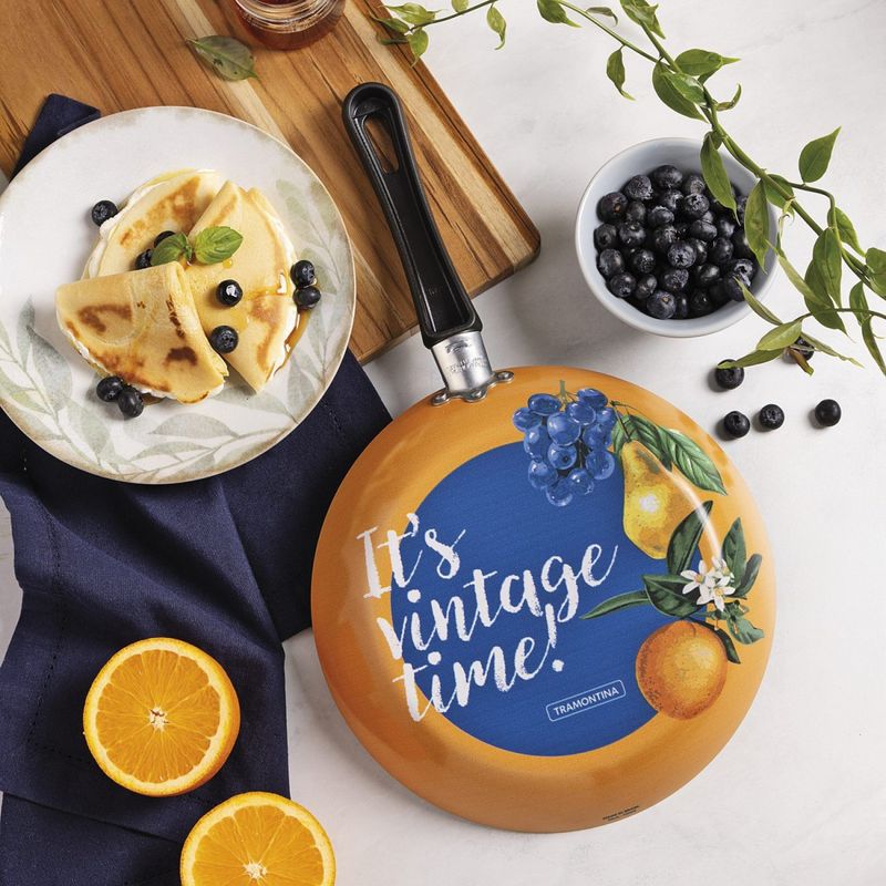 Frigideira Tramontina em Alumínio Antiaderente Siliconado Estampado 24 cm 1,2 L Starflon Max Tramontina - Frigideira Tramontina em AlumÃnio Antiaderente Siliconado Estampado 24 cm 1,2 L Starflon Max Prepare receitas cheias de sabor com a frigideira Tramontina em alumÃnio com revestimento interno em antiaderente Starflon Max e externo siliconado estampado 24 centÃmetros de diâmetro e capacidade de 1,2 litro. Ideal para o dia a dia, sua estrutura garante aquecimento uniforme e o antiaderente evita que os alimentos grudem, facilitando a limpeza. O cabo em baquelite antitérmico proporciona um manuseio mais seguro e confortável. Um item que une praticidade e eficiência para simplificar sua rotina na cozinha. Corpo de alumÃnio com espessura de 2 mm que proporciona cozimento rápido e uniforme. Revestimento interno de antiaderente Starflon Max que não gruda, é fácil de limpar, mais durável e não é prejudicial à saúde, pois é livre de PFOA. Revestimento externo siliconado.Cabo de baquelite antitérmico que oferece segurança durante o manuseio.Pode ser utilizada nos fogões: gás e elétrico. Cuidados com o produto A capacidade volumétrica máxima para cozimento é de 3/4 da capacidade total da peça. Posicione o cabo do utensÃlio voltado ao centro do fogão. Em fogões com grade, centralize a peça sobre a chama ou fonte de calor e alinhe o cabo com a grade. UtensÃlios quentes devem estar fora do alcance das crianças. Antes do primeiro uso, lave com esponja macia, sabão neutro ou detergente lÃquido. Depois de secar, unte a área interna com óleo ou gordura e leve ao fogo por um ou dois minutos. Deixe esfriar e lave novamente. Seu utensÃlio Starflon está pronto para uso com ou sem gordura, sempre em fogo baixo ou médio (nunca superior a 220 ºC). Ao manusear seu utensÃlio aquecido, cuide para não arranhar/riscar o revestimento externo. Evite manchas não deixando escorrer gordura e alimentos na área externa da peça. Caso esta situação ocorra, é recomendado realizar a limpeza imediata do local com um pano umedecido em água. Para mexer os alimentos use somente utensÃlios de silicone, nylon ou madeira. Este produto não necessita de manutenção, apenas limpeza.Limpeza: Evite a imersão do utensÃlio quente em água fria. Nunca utilize produtos abrasivos na lavagem. Se deixar queimar alimentos, umedeça a área e reserve até que possa remover os resÃduos grudados com esponja e sabão. Para maior durabilidade, não utilize em máquinas de lavar. Para descarte dos produtos e embalagem siga as orientações de reciclagem vigentes. Garantia 90 dias para vÃcios ou defeitos de fabricação. - - Características Gerais do Produto: Garantia: • 3 Meses