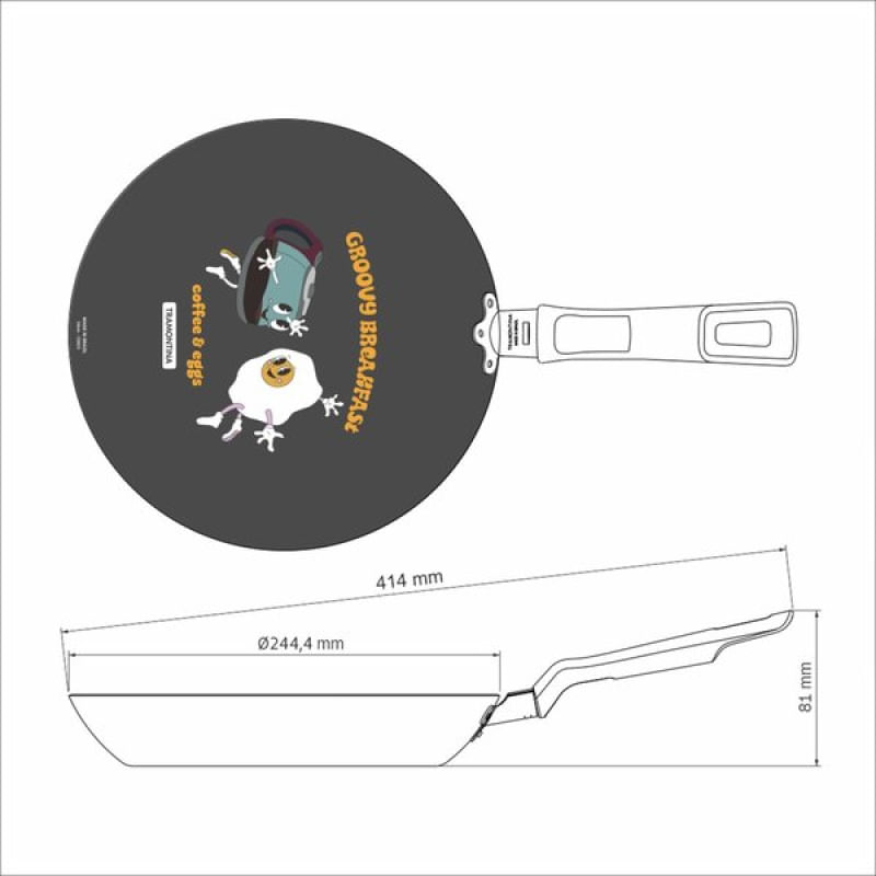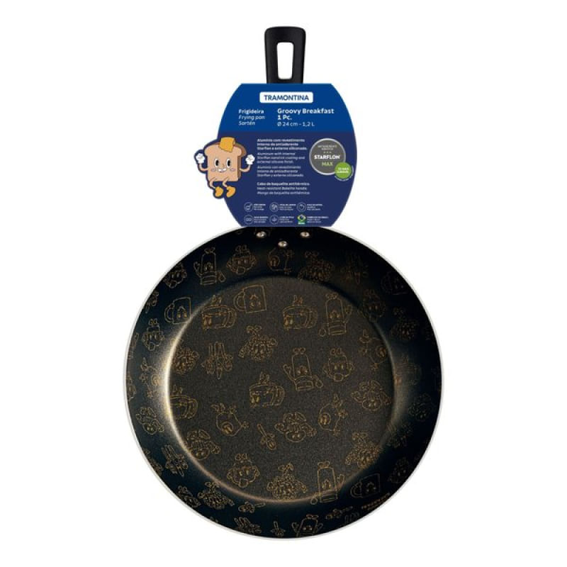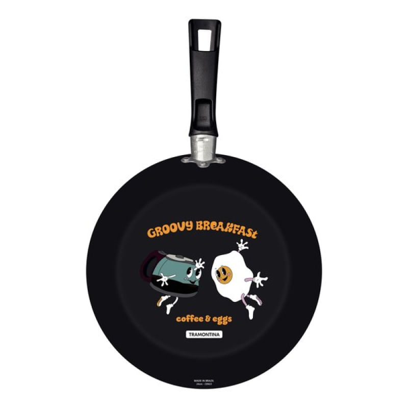 Frigideira Tramontina Groovy Breakfast Antiaderente Starflon Max Externo Siliconado Estampado 24cm Tramontina - A frigideira Tramontina Groovy Breakfast em alumínio com revestimento interno em antiaderente Starflon Max e externo siliconado estampado 24 centímetros de diâmetro é a escolha perfeita para quem busca qualidade e praticidade na cozinha. Com seu design moderno e funcional, essa frigideira é ideal para uso diário e permite o preparo das mais variadas receitas, desde um simples omelete até legumes salteados cheios de sabor. Uma das principais características dessa frigideira é o seu revestimento interno em antiaderente Starflon Max, que evita que os alimentos grudem, facilitando a limpeza e garantindo um cozimento uniforme. Seu cabo é em baquelite antitérmico, material que proporcionam segurança e conforto durante o manuseio. Muito versátil, a frigideira Tramontina Groovy Breakfast pode ser utilizada em fogões à gás e elétrico, se adaptando facilmente às diferentes cozinhas. Sua estrutura em alumínio garante durabilidade e resistência, tornando-a uma opção confiável para o dia a dia. Com a Tramontina, você tem uma aliada na preparação de deliciosas refeições, com um produto que une qualidade, durabilidade e versatilidade! Características Gerais do Produto: Garantia: • 90 dias para vícios ou defeitos de fabricação.