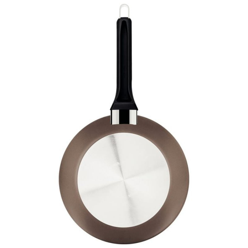 Frigideira Tramontina Milazzo Alumínio Antiaderente Starflon Max Amêndoa 28 cm Tramontina - Com a frigideira Tramontina Milazzo em Alumínio com Revestimento Interno e Externo em Antiaderente Starflon Max Amêndoa 28 cm, preparar alimentos deliciosos ficou ainda mais fácil. Seu corpo de alumínio com revestimento antiaderente Starflon Max assegura um cozimento rápido e uniforme, além de facilitar a limpeza, pois os alimentos não grudam. O cabo de baquelite antitérmico com acabamento soft-touch proporciona segurança e conforto durante o manuseio. Pode ser usada em fogões a gás, elétrico e vitrocerâmico, oferecendo grande versatilidade. Leve mais eficiência e qualidade para sua cozinha com a inovação da Tramontina, e torne o preparo de suas receitas ainda mais prazeroso! Características Gerais do Produto: Garantia: • 3 Meses