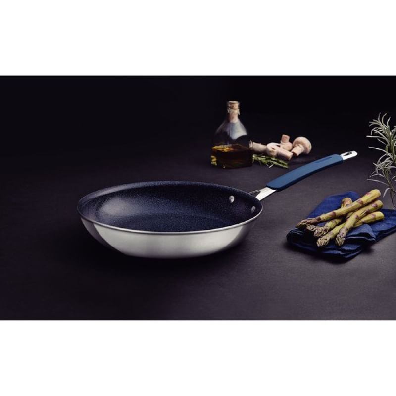 Frigideira Tramontina Romagna Black Stone 25cm Cerâmico Alumínio Inox Polido Tramontina - A frigideira Tramontina Romagna em alumínio com revestimento interno cerâmico e externo em inox polido black stone 25 centímetros de diâmetro é a escolha perfeita para quem busca qualidade e durabilidade na cozinha. Com a linha Romagna, você tem peças com camada dupla, uma camade de alumínio e uma de aço inox, garantindo um cozimento uniforme e eficiente. O revestimento externo em inox polido confere elegância ao produto, além de ser resistente e fácil de limpar. Ela é compatível com todos os tipos de fogões, incluindo indução, oferecendo versatilidade na hora de preparar suas refeições. Com cabo em aço carbono cromado com luva de silicone, ela proporciona toda a segurança e conforto que você merece durante o manuseio. Com ela, você terá uma aliada na cozinha, capaz de facilitar o seu dia a dia e entregar resultados incríveis. Invista na qualidade e tradição da marca Tramontina e experimente o prazer de cozinhar com excelência! Características Gerais do Produto: Garantia: • 90 dias para vícios ou defeitos de fabricação