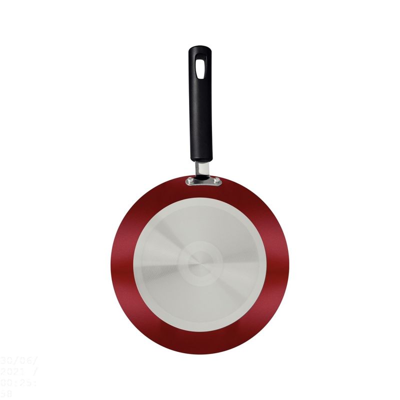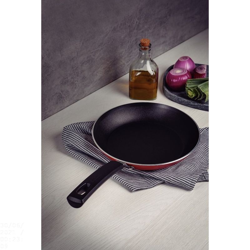 Frigideira Tramontina Sicília Alumínio Antiaderente Starflon Excellent Vermelho 24cm 1,2L Tramontina - Leve mais cor e qualidade para sua cozinha com a frigideira Tramontina Sicília em alumínio com revestimento interno e externo em antiaderente Starflon Excellent vermelho 24 centímetros de diâmetro 1,2 litros. Perfeita para uso diário, ela vai lhe proporcionar maior praticidade para sua rotina, pois os alimentos cozinham de maneira uniforme e não grudam em sua superfície, tudo isso, devido ao corpo de alumínio com revestimento antiaderente Starflon Excellent. Seu cabo é em baquelite antitérmico e proporciona um manuseio muito mais confortável e seguro, pois não aquece. Ela ainda é muito fácil de limpar e pode ser levada à máquina de louças, otimizando suas tarefas na cozinha. Um item durável e não prejudicial a saúde, indispensável para o preparo das melhores refeições! Orientações Corpo de alumínio com espessura de 3,0 mm que proporciona cozimento rápido e uniforme. Revestimento interno e externo de antiaderente Starflon Excellent que não gruda, é fácil de limpar, mais durável, não é prejudicial a saúde e é livre de PFOA.Cabo de baquelite antitérmico que oferece segurança durante o manuseio. Pode ir à máquina de lavar louças facilitando seu dia a dia. Características Gerais EAN13 7891112278271 DUN14 17891112278278 NCM 7615.10.00 0,6300 kg. 0,6500 kg. Metragem 0,009737 m³. 438x 247x 90 mm. 434x 246x 82 mm. Diâmetro 24,0 cm. Capacidade 1,20 l. Espessura 3,0 mm. Cor 1 9E2A2B Hexa Observações A capacidade volumétrica máxima para cozimento é de 3/4 da capacidade total da peça. Posicione o cabo do utensílio voltado ao centro do fogão.Em fogões com grade, centralize a peça e alinhe o cabo com a grade. Utensílios quentes devem estar fora do alcance das crianças.Este produto não pode sofrer modificações. Antes do primeiro uso, lave com esponja macia, sabão neutro ou detergente líquido. Depois de secar, unte a área interna com óleo ou gordura e leve ao fogo por um ou dois minutos. Deixe esfriar e lave novamente. Seu utensílio Starflon está pronto para uso com ou sem gordura, sempre em fogo baixo ou médio (nunca superior a 260ºC). Para mexer os alimentos use somente utensílios de silicone, nylon ou madeira. Limpeza: Evite a imersão do utensílio quente em água fria. Nunca utilize produtos abrasivos na lavagem. Se deixar queimar alimentos, umedeça a área e reserve até que possa remover os resíduos grudados com esponja e sabão.Para descarte do produto e embalagem siga as orientações de reciclagem vigentes. Este produto não necessita de manutenção, apenas limpeza. Características Gerais do Produto: Garantia: • 1 Ano