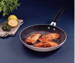 Frigideira Tramontina Tunis Cerâmico Antiaderente Externo Siliconado Rosa Trufado 28cm 2,3L Tramontina - Descubra um novo parceiro culinário com a frigideira Tramontina Tunis em alumínio com revestimento interno cerâmico antiaderente e externo siliconado rosa trufado 28 centímetros de diâmetro 2,3 litros! Construída em alumínio de alta qualidade, esta frigideira apresenta revestimento interno cerâmico antiaderente e externo em siliconado, garantindo um cozimento rápido e eficiente dos alimentos, sem que eles grudem em sua superfície. Seu cabo metálico com proteção de silicone oferece durabilidade e segurança durante o manuseio, proporcionando um manuseio confortável e firme. Seu fundo para fogão de indução auxilia para um cozimento mais rápido e uniforme, trazendo mais praticidade ao dia a dia. Eleve o sabor das suas receitas e tenha eficiência na sua cozinha com a parceria da frigideira Tramontina Tunis! Características Gerais do Produto: Garantia: • 90 dias para vícios ou defeitos de fabricação
