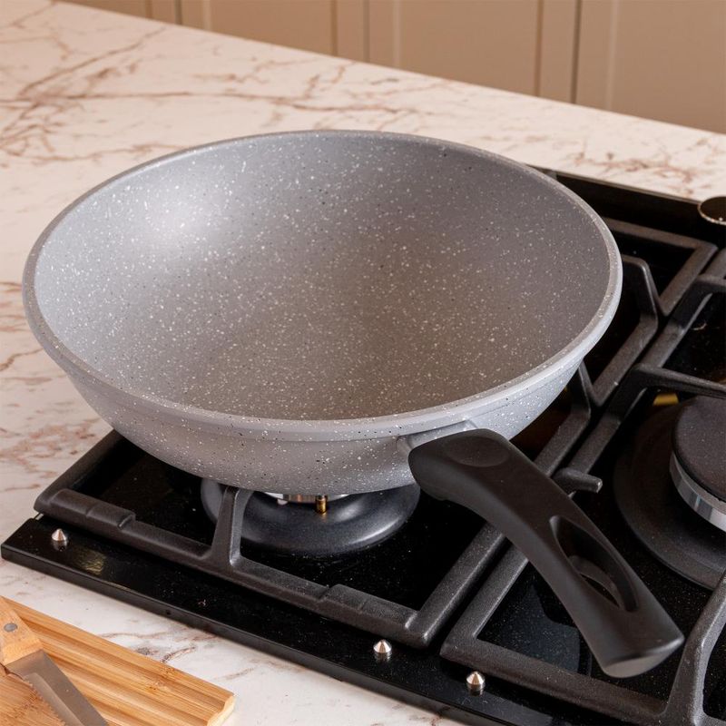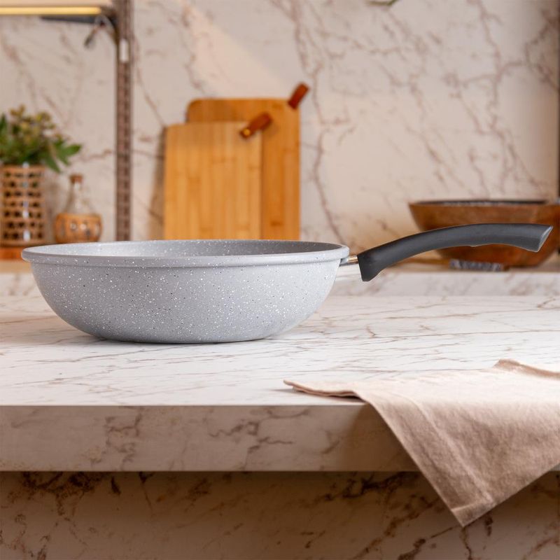 Frigideira Wok Wolff de Indução em Alumínio e Cerâmica CinzaFrigideira Wok de Indução em Alumínio com Revestimento Cerâmico Granilite Cinza 28cm - WolffA Frigideira Wok de Indução em Alumínio com Revestimento Cerâmico Granilite Cinza 28cm da Wolff oferece uma experiência culinária excepcional, combinando desempenho e estilo.Excelente Condução de CalorFabricada em alumínio de alta qualidade, esta frigideira wok assegura uma distribuição uniforme de calor, garantindo resultados de cozimento precisos e saborosos em todas as suas receitas.Revestimento DurávelO revestimento cerâmico granilite em cinza oferece uma superfície antiaderente resistente que facilita o cozimento e a limpeza, permitindo uma culinária saudável e sem esforço.Compatibilidade com InduçãoProjetada para atender às exigências modernas da cozinha, esta frigideira wok é compatível com todos os tipos de fogões, inclusive indução, proporcionando versatilidade e praticidade.Design Ergonômico e FuncionalCom um diâmetro de 28cm, alça ergonômica e borda alta, esta frigideira wok é ideal para saltear legumes, fritar, refogar e preparar uma variedade de pratos asiáticos e internacionais.Adicione sofisticação e desempenho à sua cozinha com a Frigideira Wok de Indução em Alumínio com Revestimento Cerâmico Granilite Cinza 28cm da Wolff.WOLFF. A melhor experiência em receber, servir e decorar!Contém: 1 FrigideiraForno: NãoFogão: SimMedidas Produto: Altura 8,00cm x Largura 28,00cm x Comprimento 47,00cmPeso: 0,67KgCor: CinzaMaterial: AlumínioLavar com detergente neutro, esponja macia e secar imediatamente.