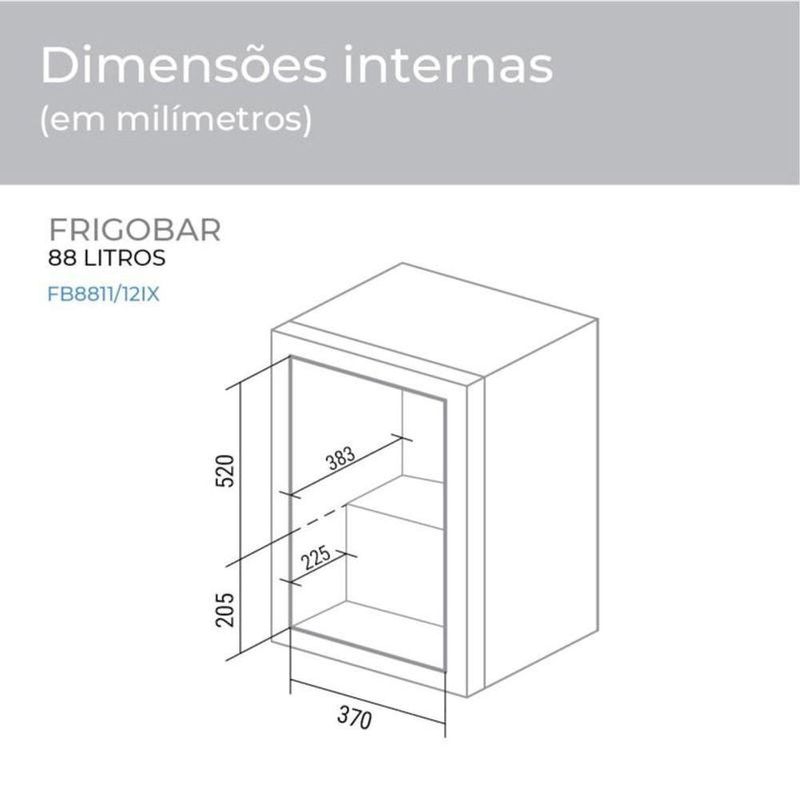 Frigobar 88 Litros Inox Suggar 110VFrigobar 88 Litros Inox Suggar 220VO Frigobar 88 Litros Suggar é ideal para a refrigeração de bebidas e alimentos. Compacto, cabe em qualquer cantinho da casa sem ocupar muito espaço. Possui prateleiras reguláveis que permitem organizar os produtos da forma que desejar.Conta com sistema de compressor, que gelará mais rápido com menor consumo de energia, e iluminação interna em LED, que facilita a visualização sem interferir na temperatura interna. Uma opção prática, econômica e funcional para o seu dia a dia.Vantagens do ProdutoControle de temperatura digital: precisão na regulagem de 4°C a 18°CPrateleira removívelFácil instalaçãoRefrigeração por compressorIluminação interna com LEDsEspecificações TécnicasFabricante: Suggar Eletrodomésticos Nome do produto: Frigobar 88 litrosVoltagem: 110VCor: InoxMultiuso: ideal para diversos tipos de bebidas e alimentosPotência: 85WProduto com embalagem (L x A x P): 43,0 x 82,5 x 48,0 cmPeso: 25,5 kgModelo 127V: FB8811IX Código EAN 127V: 789.651.850.363-7Modelo 220V: FB8812IX Código EAN 220V: 789.651.850.364-4Quantidade de peças por caixa: 1