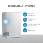Frigobar Branco 93L Inverter Bivolt Midea MDRD142FGD013 Bivolt O Frigobar Branco 93L Inverter Bivolt Midea MDRD142FGD013 É A Escolha Ideal Para Quem Valoriza Desempenho E Design Em Um Único Produto. Com 93 Litros De Capacidade, É Compacto Por Fora E Espaçoso Por Dentro, Ideal Para Armazenar Bebidas, Alimentos E Até Garrafas De 2 Litros. Conta Com Compartimento Extra Frio, Prateleiras De Vidro Fáceis De Limpar E Gaveta Organizadora. O Controle De Temperatura Preciso Permite Ajuste Ideal Para Conservação De Bebidas E Alimentos. A Tecnologia Flexi Volt Permite Uso Em 127V Ou 220V, E A Tecnologia Inverter Garante Resfriamento Rápido, Baixo Nível De Ruído E Alta Eficiência Energética Com Selo A, De Acordo Com O Novo Padrão Do INMETRO.Características:Tecnologia Inverter: Economia de energia (Classificação A no novo padrão do INMETRO), baixo ruído, resfriamento rápido e temperatura estávelCompartimento Gela Rápido: Espaço que acelera o resfriamento de alimentos e bebidasGarantia de 10 anos no compressorPrateleiras de vidro e gaveta organizadoraEspecificações Técnicas:Marca: MideaCor: BrancoProduto Conectado: NãoCapacidade Total: 93LInteligência Artificial: NãoFunções: RefrigeraçãoControle de Temperatura: Ajuste fácil por meio de potenciômetro com 7 níveis, entre 0°C e 10°CRange de Temperatura: 0~10°CCor Interna: BrancoMaterial Interno: PSAIMaterial Externo: PCMQuantidade de Portas: 1Gavetas: Sim, 1Prateleiras: 3 (Vidro)Prateleiras Para PET: SimPorta Latas: SimPossui Rodinhas: NãoCom Freezer: NãoPés Niveladores: SimPorta Reversível: SimGás Ecológico: Sim, R600aFrequência: 60 HzTipo de Tomada: 10 AOrigem: ImportadoAltura Do Produto: 86 cmProfundidade Do Produto: 45 cmLargura Do Produto: 47,2 cmPeso Do Produto: 18 kgAltura Embalado: 88,5 cmLargura Embalado: 52 cmProfundidade Embalado: 46,5 cmPeso Embalado: 20 kgItens Inclusos: Frigobar e manual de usuárioGarantia do Produto: 12 mesesGarantia Estendida/Adicional: 10 anos no compressorAtenção: Esta loja não fatura para CNPJ.
