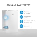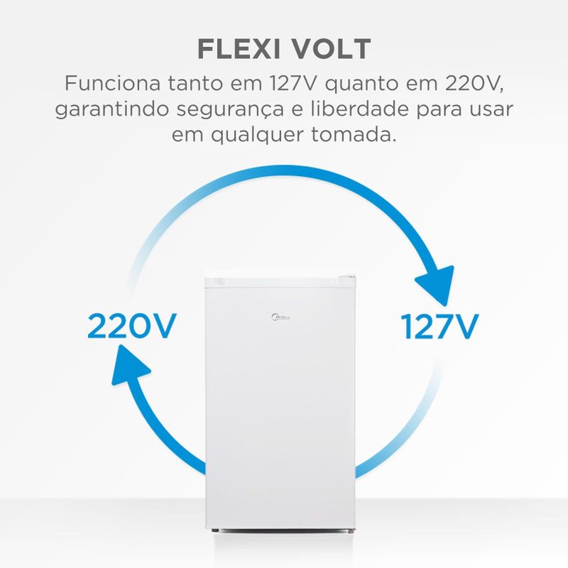 Frigobar Midea 124L MDRD181FGD013: Compacto por fora e espaçoso por dentro!O Frigobar Midea 124L Branco oferece desempenho, economia e design em um único produto. Compacto por fora e espaçoso por dentro, ele acomoda bebidas, alimentos e até garrafas de 2 litros, com organização prática para o dia a dia.Tecnologia InverterCom Tecnologia Inverter, o resfriamento é mais rápido e eficiente, garantindo baixo ruído e economia de energia com classificação A no novo padrão do Inmetro. O Flexi Volt permite o uso em 110V ou 220V, trazendo mais liberdade de instalação.7 níveis de TemperaturaO controle de temperatura conta com 7 níveis entre 0°C e 10°C, enquanto o compartimento extra frio oferece bebidas geladas mais rápido. Prateleiras de VidroAs prateleiras de vidro e a gaveta organizadora facilitam a limpeza e mantêm tudo sempre arrumado. Tecnologia Inverter: resfriamento rápido, estável e silencioso. Flexi Volt: funciona em 110V ou 220V. Controle de temperatura de 0°C a 10°C com 7 níveis. Compartimento extra frio para gelar bebidas mais rápido. Prateleiras de vidro elegantes e fáceis de limpar. Compartimento exclusivo para 8 latas. Gaveta organizadora para frutas e alimentos. Gás ecológico R600a. 10 anos de garantia no compressor Inverter. Conheça também outros produtos com a tecnologia e inovação Midea. Confira!
