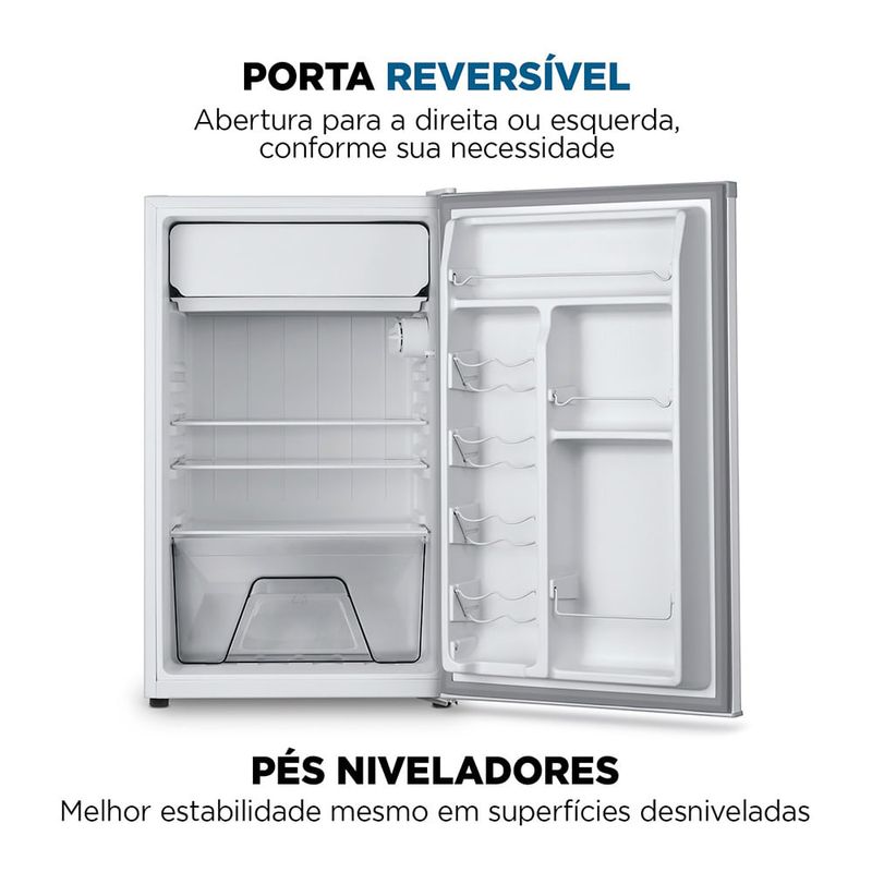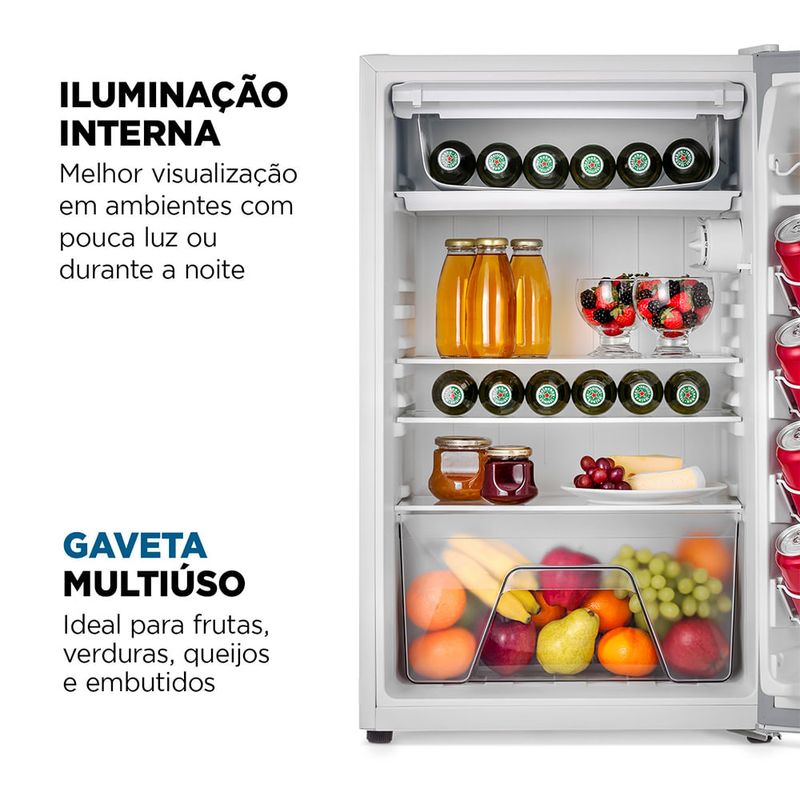 O Frigobar Mondial 120L FGB-01-W120 é uma excelente solução para quem deseja manter snacks, bebidas e frutas sempre fresquinhos em churrasqueiras, áreas gourmets entre outros espaços. Sua porta reversível, ajustável para abrir à direita ou à esquerda, possibilita que o frigobar se encaixe facilmente. O interior do frigobar foi projetado para aproveitar cada centímetro de forma eficiente. As três prateleiras de vidro temperado, oferecem estabilidade, são fáceis de limpar e ótimas para organizar. O compartimento interno da porta acomoda 8 latas e garrafas de até 2 litros, enquanto a área extra fria gela bebidas rapidamente, trazendo mais praticidade ao seu dia a dia. Possui uma gaveta multiúso para acomodar frutas, verduras e legumes, permitindo separar e organizar cada alimento de forma eficiente. A iluminação interna facilita a visualização e a localização dos itens, especialmente em ambientes com pouca luz ou durante a noite. O FGB-01-W120 conta com 7 níveis de controle de temperatura, permitindo o ajuste ideal para todos os tipos de alimentos e bebidas, e pés niveladores ajustáveis para manter a estabilidade do frigobar em qualquer superfície, mesmo em pisos irregulares. O frigobar Mondial utiliza o gás ecológico R600A, que contribui para a preservação do meio ambiente sem prejudicar a camada de ozônio. Descubra os diferenciais do FGB-01-W120:• Capacidade de 120 Litros: Oferece amplo espaço para armazenar uma variedade de bebidas, frutas e snacks, mantendo-os sempre frescos e prontos para o consumo.• Área Extra Fria: Compartimento especial para gelar bebidas rapidamente.• Iluminação Interna: Facilita a visualização e localização dos itens armazenados, especialmente em ambientes com pouca luz ou durante a noite. Além disso, adiciona um toque de elegância e modernidade ao frigobar.• Gaveta Multiúso: Maximiza o uso do espaço interno do frigobar e é ideal para guardar alimentos menores ou itens que precisam ser mantidos separados, como frutas, queijos ou embutidos.• 7 Níveis de Controle de Temperatura: Permite ajustar facilmente a temperatura ideal, preservando o frescor e a qualidade de alimentos e bebidas.• Prateleiras de Vidro Temperado: Além de oferecer estabilidade e ser fácil de limpar, são ótimas para armazenar iogurtes, doces, sanduíches e outros, permitindo uma melhor distribuição dos itens e facilitando o acesso.• Distribuição Interna Inteligente: Organize latas, garrafas e diversos produtos de forma prática, aproveitando cada espaço do frigobar de maneira eficiente.• Porta Reversível com Puxador Embutido: Escolha o lado de abertura da porta, para a direita ou para a esquerda, permitindo que o frigobar se encaixe em qualquer espaço.• Pés Niveladores Ajustáveis: Proporcionam estabilidade em diferentes tipos de superfícies, mesmo em locais com pisos irregulares.• Sustentabilidade e Eficiência Energética: O frigobar utiliza o gás ecológico R600A, que contribui para a preservação do meio ambiente e não agride a camada de ozônio.• Garantia Prolongada - 10 Anos no Compressor: O compressor do Frigobar FGB-01-W120 conta com 10 anos de garantia* a partir da data de emissão da nota fiscal, oferecendo tranquilidade e segurança. *Para outros componentes, o prazo de garantia é de 12 meses.• Um Ano de Garantia Mondial: A Mondial é a escolha de milhões de consumidores. Mondial, a escolha inteligente!