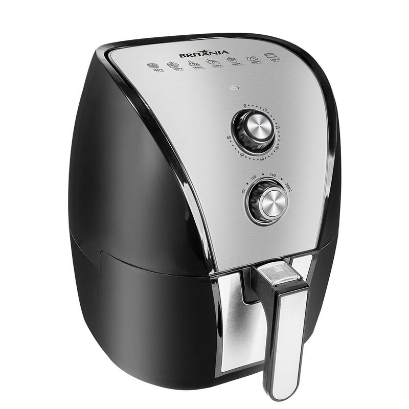 Perfeita para que tem fome e não quer passar muito tempo na cozinha. A Air Fryer Britânia 5L Revestimento Antiaderente 1500W BFR40PI proporciona dias na cozinha muito mais práticos! Isso porque ela conta com 1500W de potência, ideal para preparar desde os alimentos simples aos mais complexos. Seu antiaderente garante que os alimentos não vão grudar na superfície do cesto, além de facilitar a limpeza. A Air Fryer Britânia BFR40PI vai facilitar a sua rotina na cozinha e proporcionar uma alimentação mais saudável, afinal, você prepara suas receitas favoritas com pouquíssimo ou nenhum óleo! • Frita com pouquíssimo ou nenhum óleo • Seletor de temperatura com ajuste de 80 a 200°C • Timer de 60 minutos • Capacidade do cesto 4,35l • Capacidade da cuba de 5 litros • Luzes indicadoras de funcionamento - laranja • Base antiderrapante • Cesto com formato quadrado • Cesto removível com revestimento antiaderente • Trava de segurança • Sistema de proteção contra superaquecimento • Acabamento frontal em inox • Composição: Metal e Plástico.