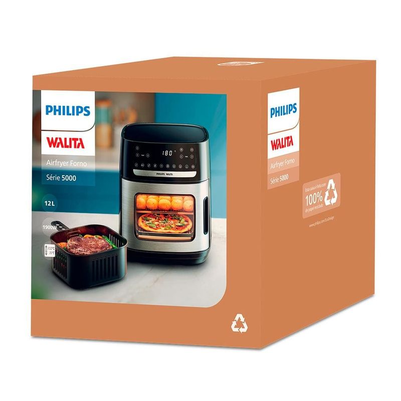 Fritadeira Forno Airfryer Philips Walita Oven AI551 Série 5000 – Um forno completo: frita sem óleo, assa, grelha, gratina, desidrata e mantem aquecido! Fritadeira Forno Airfryer Philips Walita Oven AI551 Série 5000 é a solução mais que completa para quem busca praticidade, versatilidade e refeições mais saudáveis no dia a dia. Capacidade Interna Com capacidade gigante de 12 litros, foi especialmente pensada para fazer grandes porções e receitas para toda a família. 10 Funções Predefinidas Com 10 funções predefinidas, incluindo desidratar e preparar iogurte, esta fritadeira vai muito além de uma airfryer comum, você pode assar, grelhar, gratinar e até reaquecer alimentos com resultados uniformes e saborosos. Painel Touch Seu painel sensível ao toque garante um uso intuitivo e prático, enquanto a iluminação interna e a janela transparente permite acompanhar todo o preparo sem abrir o aparelho. Timer de 24 horas O timer de até 24 horas e o desligamento automático oferecem segurança e comodidade em qualquer receita. Potência Com design moderno em inox, a fritadeira une elegância, potência de 1600W (110V) e 1900W (220V) Acessórios Inclusos A Philips Walita Oven AI551 acompanha 4 acessórios antiaderentes removíveis e fáceis de lavar: 2 grelhas multifuncionais 1 cesto airfryer com alça removível 1 bandeja coletora de gordura A aliada perfeita para preparar refeições saborosas e nutritivas para toda a família, que conta ainda com o App HomeID: com mais de 700 receitas incríveis para variar o cardápio todos os dias. Descubra mais produtos com a inovação e tecnologia Philips Walita!
