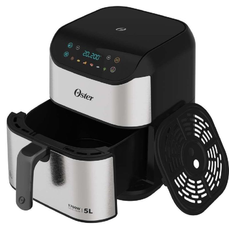 Fritadeira Digital Oster Inox 5L Com Painel Touch OFRT930 127VA Fritadeira Digital Oster Inox 5L combina design sofisticado, alta performance e tecnologia de ponta para transformar sua experiência culinária. Ideal para quem busca praticidade sem abrir mão do estilo, ela é a escolha perfeita para preparar receitas deliciosas e saudáveis para toda a família. Painel Touch Colorido: Moderno e intuitivo, oferece funções pré-programadas que facilitam o preparo de diferentes pratos com um único toque. Grelha Easy Clean: Revestimento em Teflon que facilita a limpeza, proporcionando praticidade no dia a dia. Alta eficiência para resultados rápidos e consistentes, deixando os alimentos crocantes por fora e macios por dentro. Timer de até 60 minutos: Precisão para evitar preocupações e garantir que tudo fique no ponto certo. Temperatura ajustável de 80ºC a 200ºC: Versatilidade para preparar desde pratos leves até receitas mais elaboradas.Fritadeira Digital Oster Inox 5L : Linda por fora, extraordinária por dentro!Especificações técnicas: Voltagem:127V Modelo:OFRT930 Cor: InoxPotencia: 1500W Capacidade: 5LTemperatura: de 80º a 200ºCTimer 60 minPainel touch colorido: moderno e com funções pré-programadasDimensões do produto: 33 A x 34 L x 28 P cm Dimensões do produto embalado: 37,5 A x 38,8 L x 32,8 P cm Peso líquido: 4,64 kgPeso Bruto: 5,1 kgGarantia: 12 meses