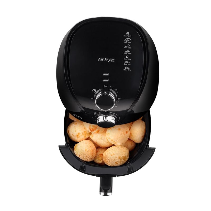 Atenção: informações importantes O que são produtos reembalados? São produtos originais de fábrica que podem conter algum tipo de avaria. Os produtos reembalados podem não acompanhar os acessórios, mas isso não impacta no funcionamento. Estas avarias são apenas de aparência, que não afetam a funcionalidade e uso. Produto reembalado com garantia de 90 dias para vícios ocultos. Não cobrimos eventuais danos estéticos. Airfryer chegou em uma versão mais premium para fazer a diferença na sua cozinha. Perfeita para facilitar sua vida e da sua família, prepare muito mais alimentos como carnes assadas, petiscos e até sobremesas. Prepare também outras porções saborosas e crocante com as funções de assar, fritar, tostar e gratinar, sem usar uma única gota de óleo. A airfryer tem alarme sonoro com desligamento automático e seletor de temperatura 80 a 200ºC. Assim, você tem o controle exato sobre o preparo do alimento sem se preocupar.Ela ainda conta com uma cuba grande para facilitar o preparo, além de ser super fácil de limpar, graças à grade removível. Ainda acompanha pegador para facilitar o uso!Design Premium! Seu acabamento Black Piano e seu design arredondado trarão sofisticação e estilo para sua cozinha.Imagens meramente ilustrativas.