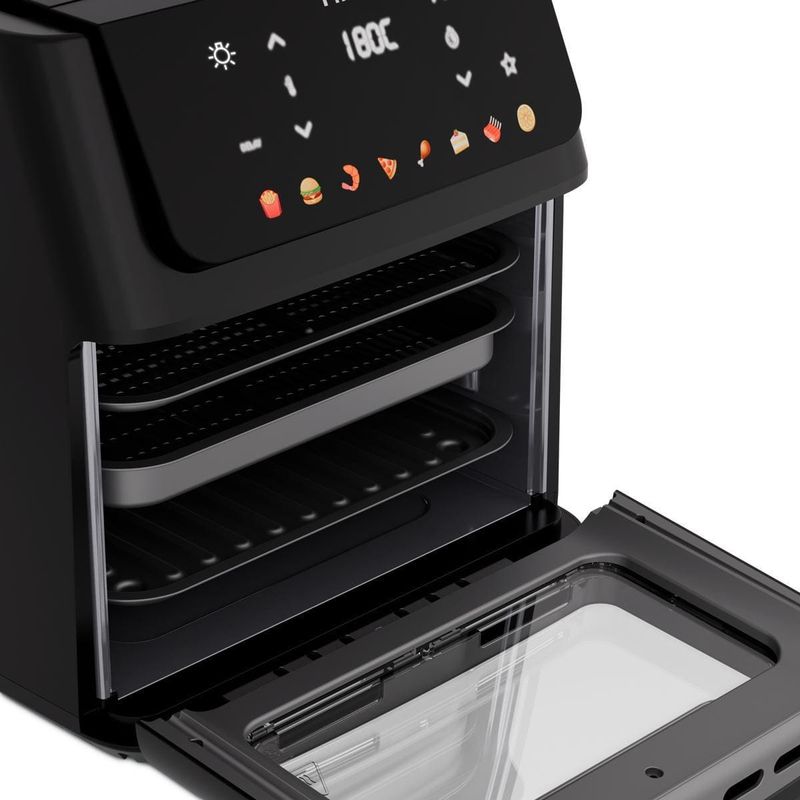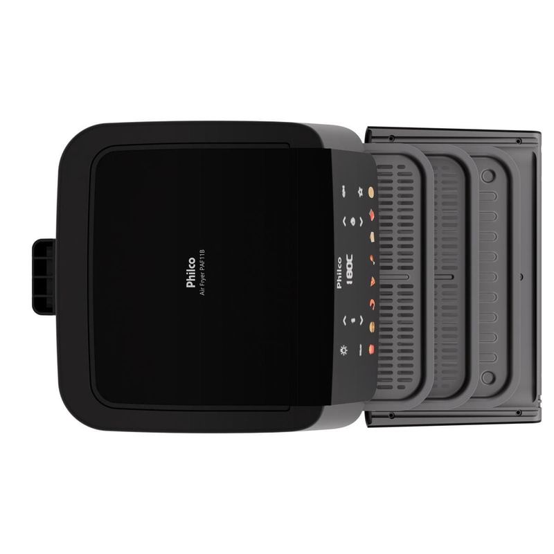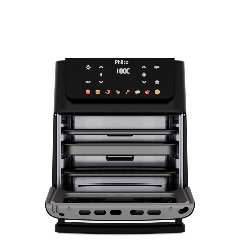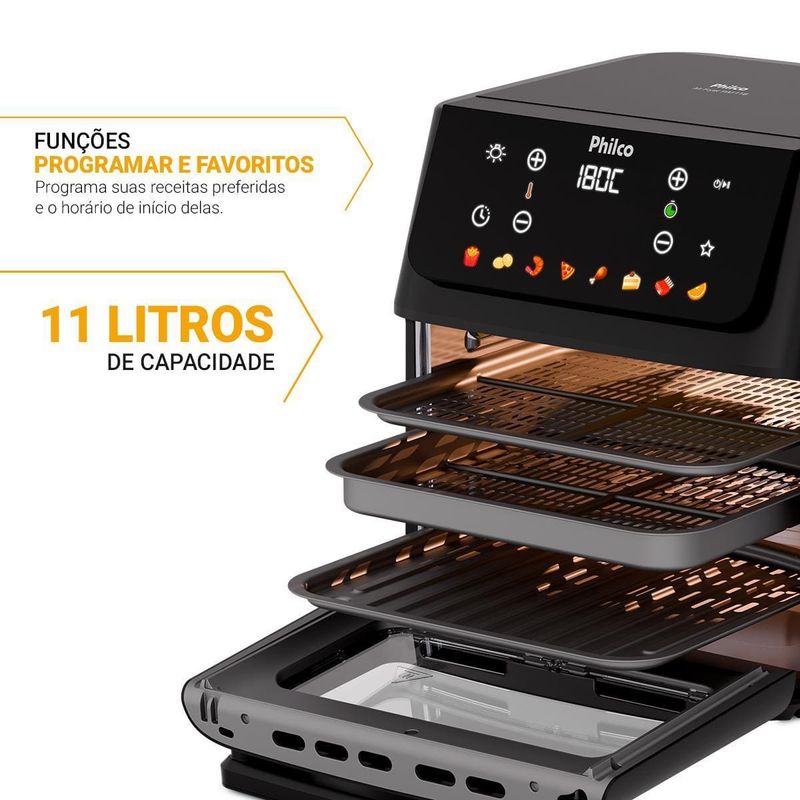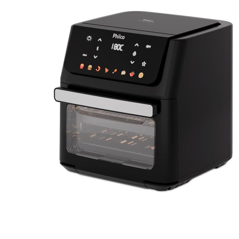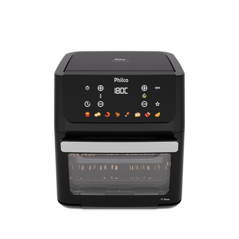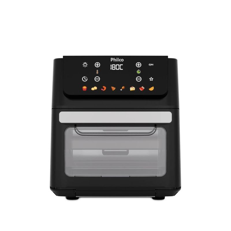 A Fritadeira Elétrica Oven PAF11B 11L da Philco é a escolha perfeita para quem busca praticidade e sabor. Com 8 funções pré-programadas, você prepara diversos alimentos sem complicação. A capacidade de 11 litros garante espaço para grandes porções, ideal para famílias ou para receber amigos. A porta com visor removível permite acompanhar o preparo sem abrir, mantendo o calor interno. Além disso, a limpeza é fácil e rápida. Com a função Programar, você define o horário do preparo e organiza sua rotina. Já a função Menu Favorito grava seus ajustes preferidos para receitas rápidas. Conta também com função Agitar, que avisa quando é hora de mexer os alimentos para um dourado uniforme. O cesto antiaderente evita que os alimentos grudem, garantindo preparo saudável com pouco ou nenhum óleo. Com potência de 1800W e temperatura máxima de 200°C, suas receitas ficam sempre no ponto certo. Design moderno em preto fosco, desligamento automático e função manter aquecido completam a experiência. Aproveite toda a tecnologia Philco para transformar sua cozinha! Que tal combinar essa fritadeira elétrica com um super Aparelho de Jantar? Aproveite agora mesmo!