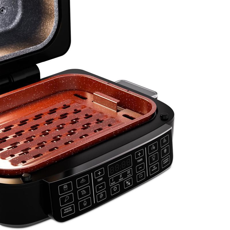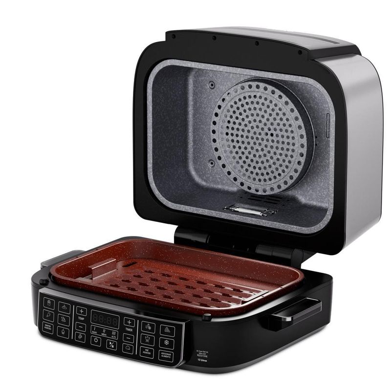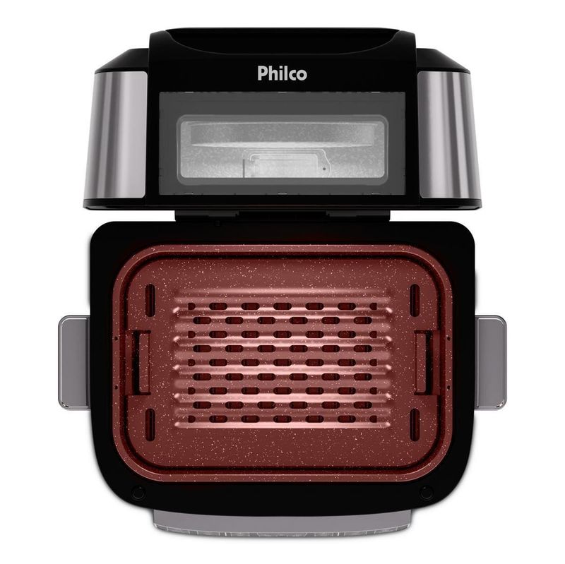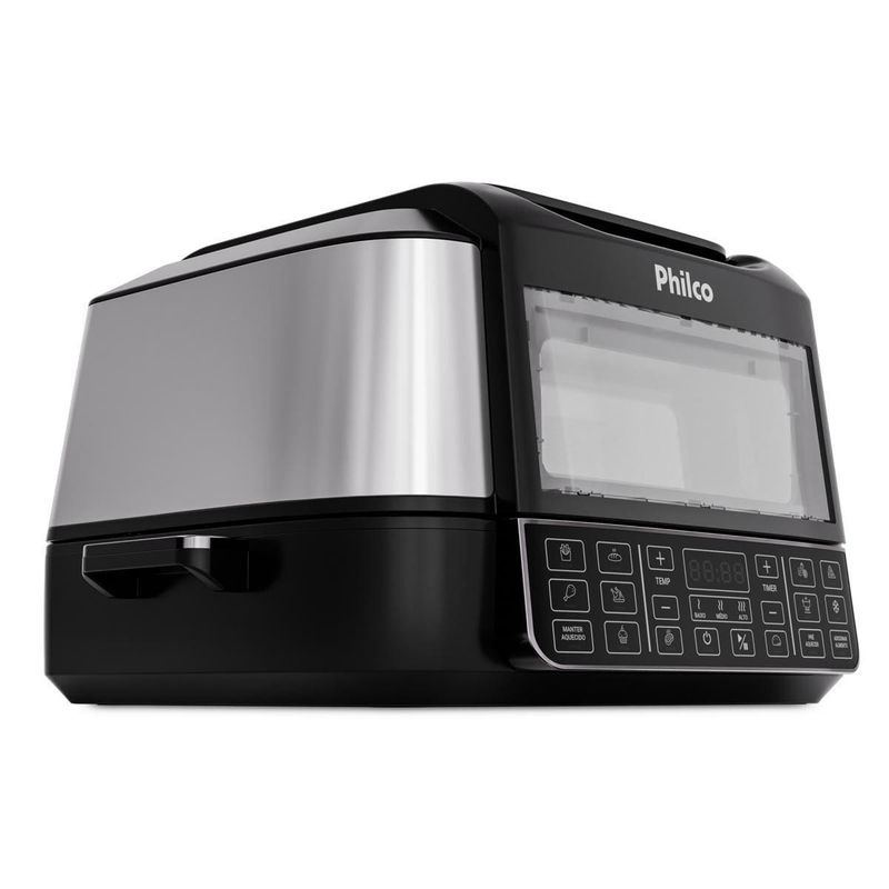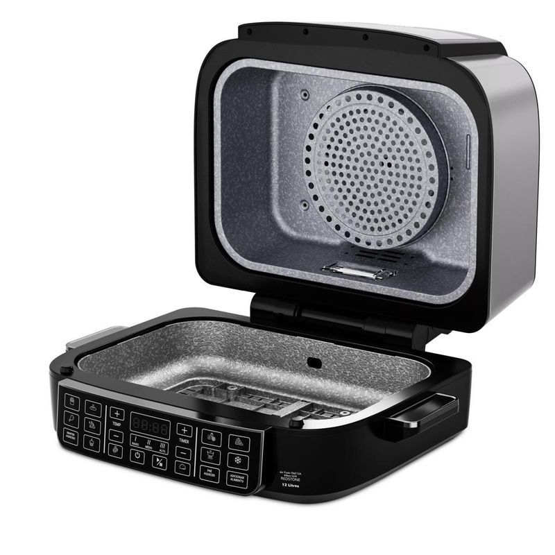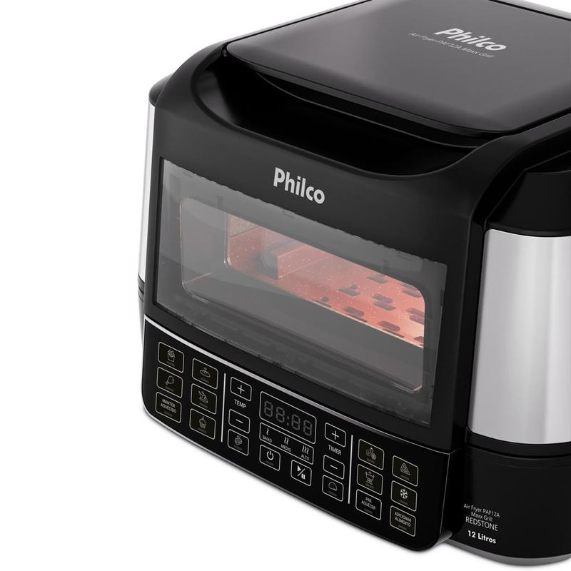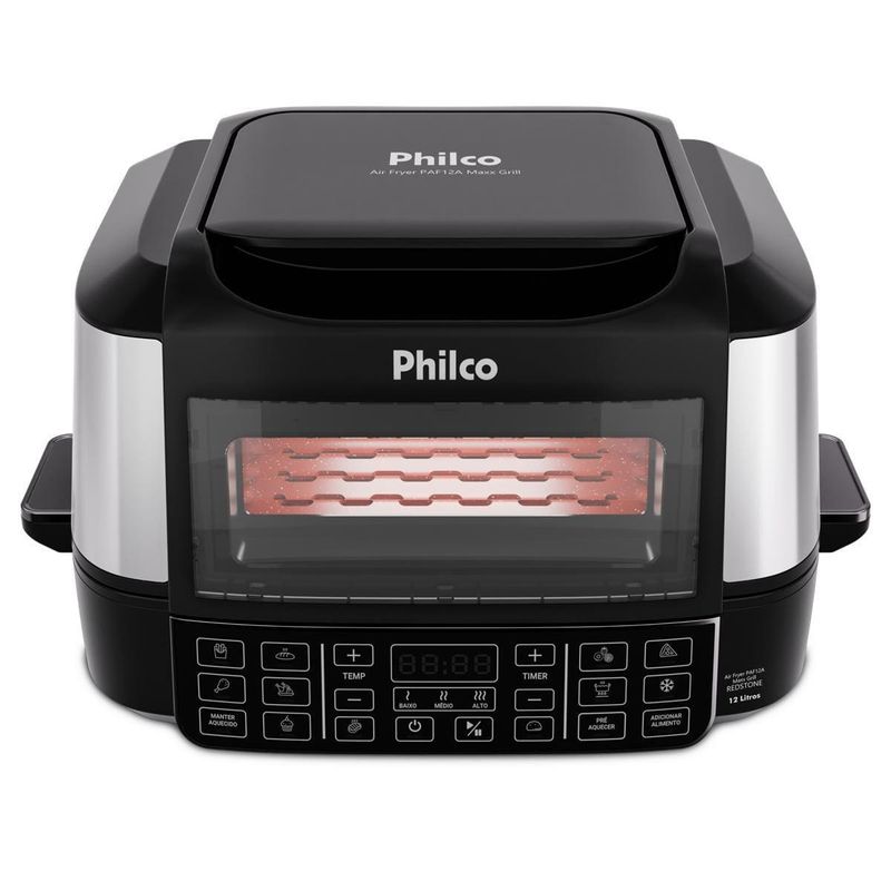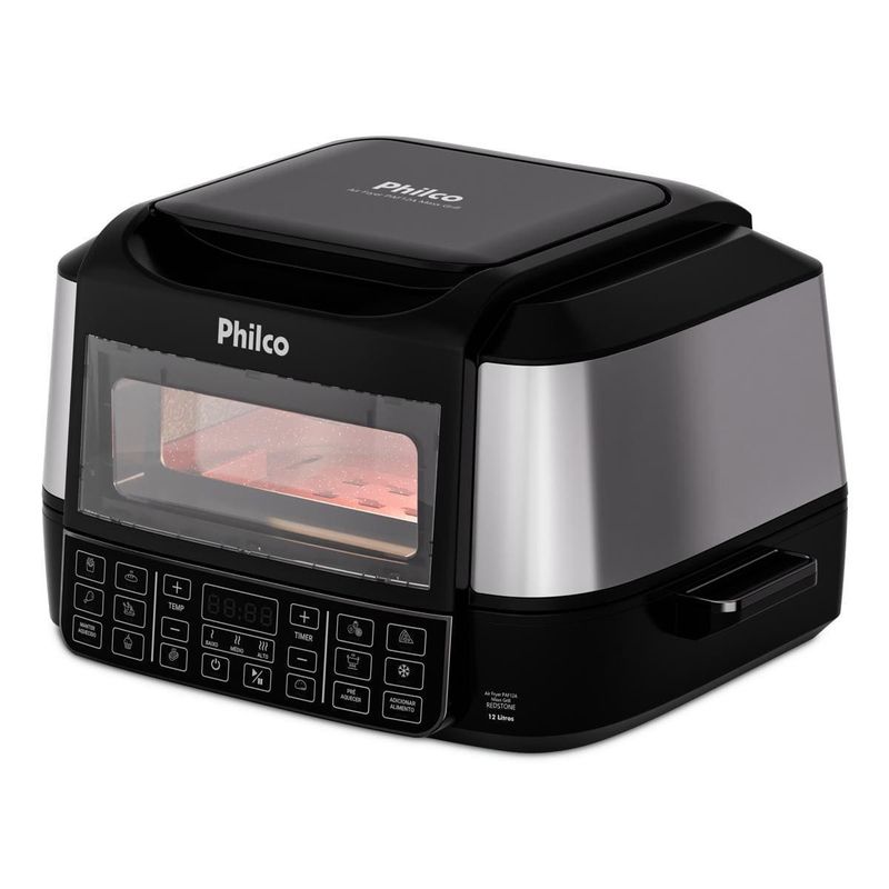 A Fritadeira Elétrica Oven PAF12A 12L Grill da Philco é a escolha perfeita para quem busca praticidade, versatilidade e sabor em cada receita. Com 15 funções no painel digital, você prepara pratos incríveis com apenas um toque, garantindo mais agilidade na sua rotina.Desfrute da função barbecue com 3 pontos de grelhar, ideal para carnes no ponto certo, e da resistência dupla com 1800W na parte superior e 1000W na inferior, que assegura aquecimento rápido e uniforme para receitas crocantes por fora e suculentas por dentro.Ajuste a temperatura de 50°C a 205°C para explorar diferentes preparos, desde desidratar frutas até assar carnes com alta performance. O timer de até 120 minutos oferece controle total e evita desperdícios, enquanto a trava de segurança garante proteção extra no dia a dia.Com funções especiais para desidratar e descongelar alimentos, você prepara snacks saudáveis ou agiliza receitas com praticidade. Acompanha refratário versátil, perfeito para bolos e pizzas, além de grelha e cesto removíveis com revestimento antiaderente Redstone.Design moderno em preto com acabamento em inox, capacidade de 12 litros e potência de 1800W fazem da Philco PAF12A a aliada ideal para quem ama cozinhar com qualidade e segurança.Que tal combinar essa fritadeira elétrica com um super Aparelho de Jantar? Aproveite agora mesmo!