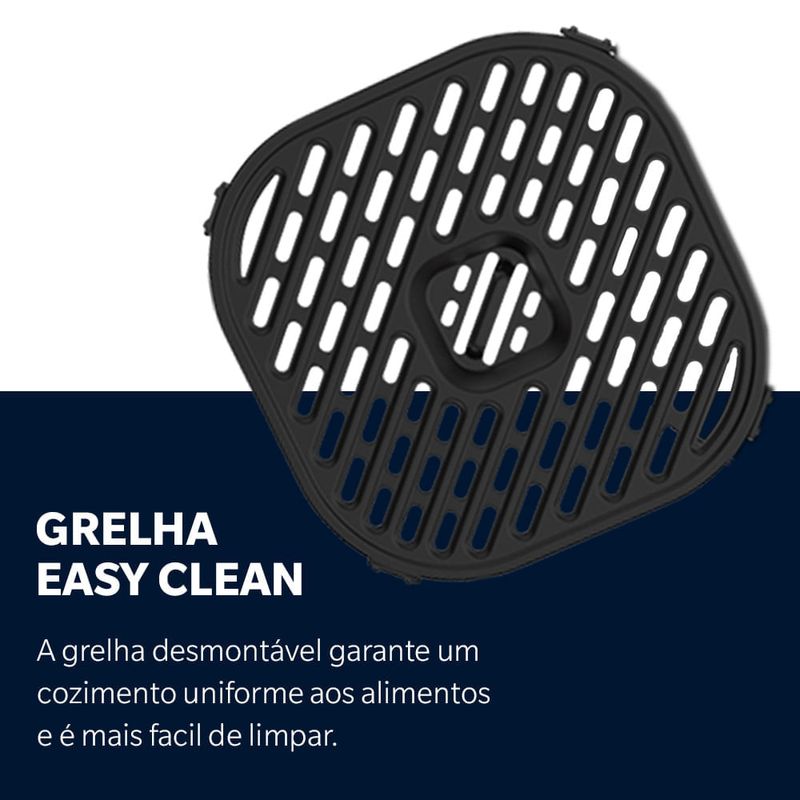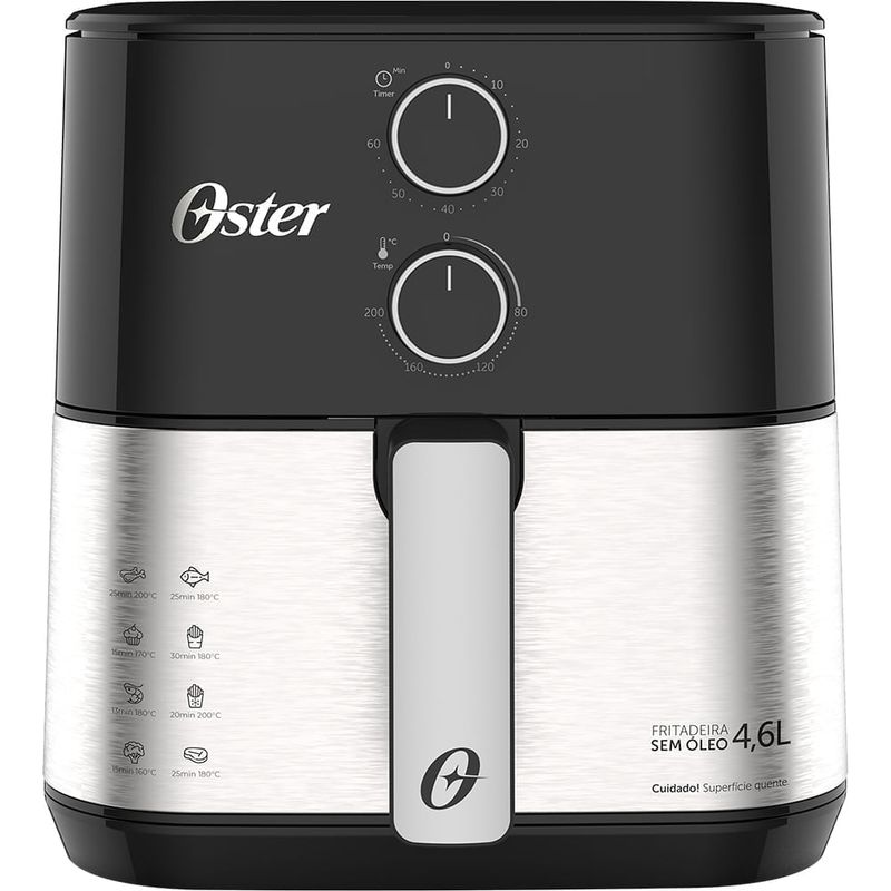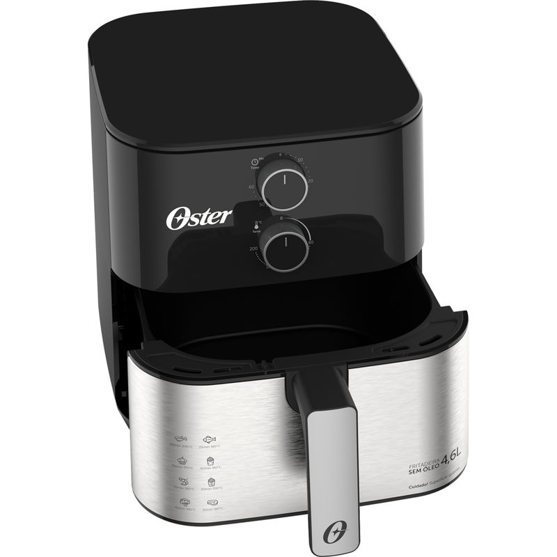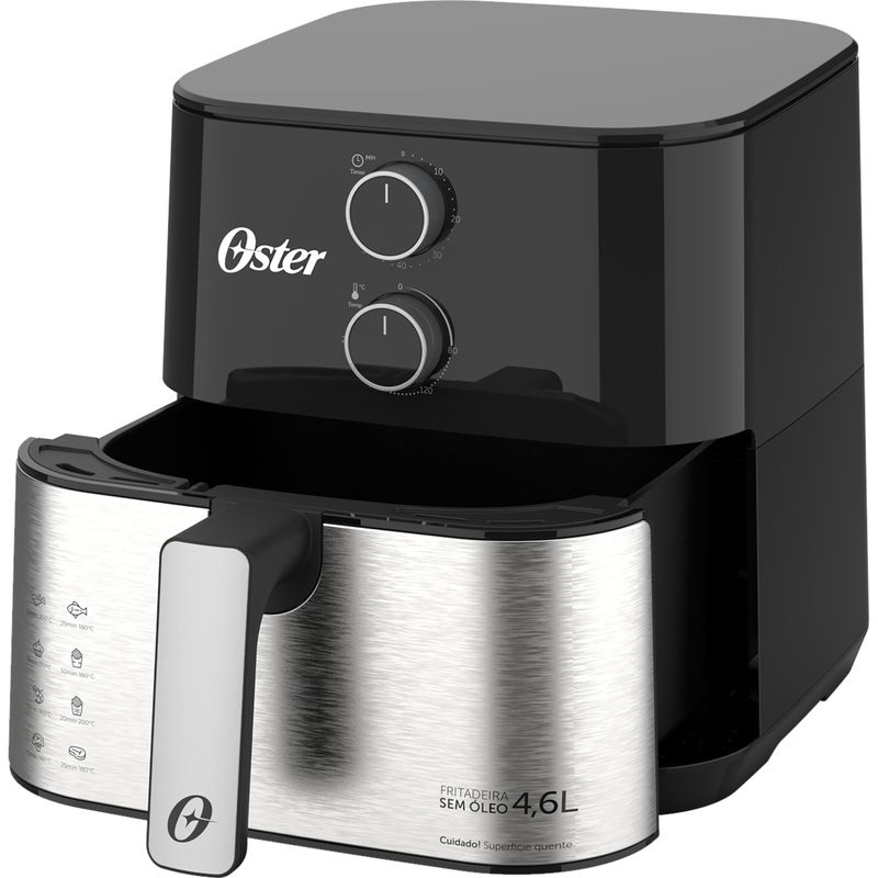 Fritadeira Inox Compact 4,6L Oster Praticidade ou espaço? A Fritadeira Oster 4,6 litros combina o melhor dos dois mundos! Por fora, um design compacto que deixa sua cozinha mais prática e muito mais bonita. Por dentro, ampla capacidade para preparar receitas tamanho família. 4,6L de capacidade: Revestimento interno antiaderente com uma capacidade perfeita para as receitas que a sua família adora, e muito mais saudáveis. 1500W de potência: Seus alimentos ganham mais cocrância, e você ganha mais tempo. Grelha Easy Clean: Removível e mais fácil de limpar! Além de possibilitar um preparo por igual, pois a grelha permite que o ar circule por todo o espaço interno. Timer de 60 minutos: Suas receitas prontas no tempo certo. Design Compacto: Formato retangular e compacto que possibilita um melhor aproveitamento ao distribuir os alimentos internamente, além de facilitar na hora de guardar. Ajuste de Temperatura: Prepare receitas saudáveis na temperatura ideal. É possível ajustar de 80o a 200oC. Compacta no tamanho. Surpreendente na capacidade. Selo de Segurança OCP SGS