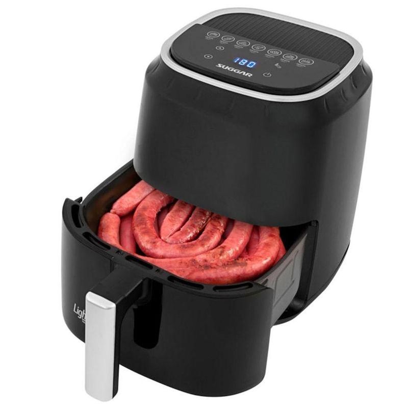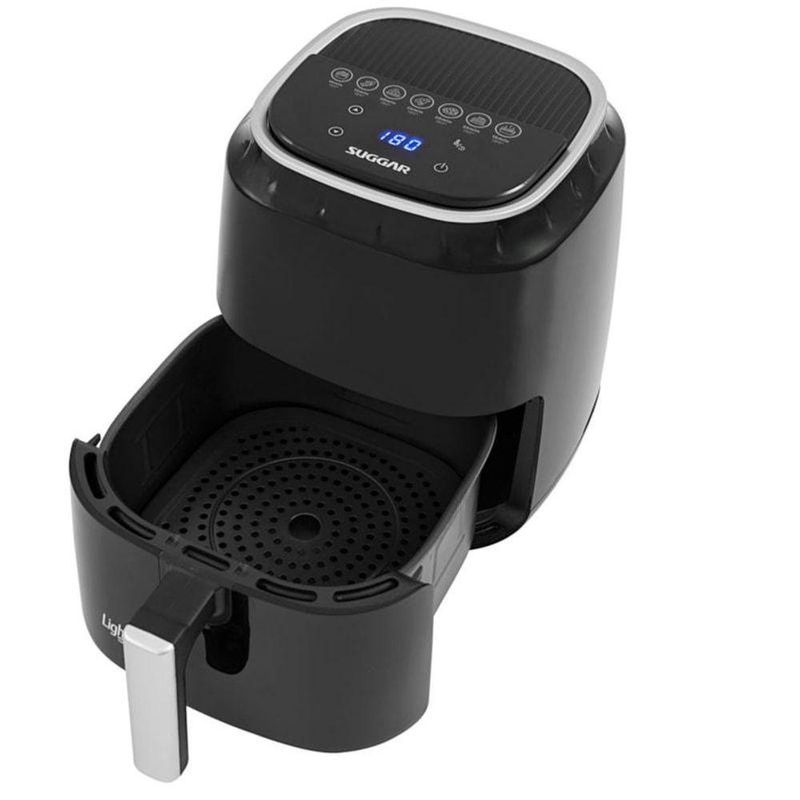 Fritadeira Light Fry Touch Control 4 Litros Preta Suggar 110VDiga adeus ao óleo e dê as boas-vindas ao sabor saudável com a Fritadeira Light Fry Touch Control Suggar.Com um cesto espaçoso de 4 litros, há espaço de sobra para preparar refeições para toda a família. Seu controle de temperatura ajustável até 200°C e a função timer de 60 minutos garantem resultados perfeitos em cada prato.O painel digital touch control torna o ajuste de tempo e temperatura simples e intuitivo, proporcionando total controle durante o preparo.Graças à tecnologia de circulação de ar quente, os alimentos são assados de maneira rápida e uniforme, ficando crocantes por fora e macios por dentro.Prepare-se para refeições mais saudáveis, saborosas e práticas como nunca antes!Vantagens do ProdutoFrita sem óleo: alimentação mais saudável, sem cheiro de gordura e fumaçaPainel digital touch control: ajuste rápido e eficaz de temperatura e tempoAssa mais rápido e por igual: tecnologia de circulação de ar quenteControle de temperatura: de 80ºC a 200ºCCesto com capacidade de 4 litros: tamanho perfeito para seus alimentosFunção timer de 60 minutos: ideal para receitas mais demoradasEspecificações TécnicasNome do produto: Fritadeira Light Fry Touch ControlMarca: SuggarGarantia: 12 MesesCor: PretoTamanho: 4 LitrosModelo: FT0042PTVoltagem: 110VCor: PretaPotência: 1200WAltura embalagem: 25,0 cmLargura embalagem: 33,3 cmProfundidade embalagem: 30,0 cmPeso embalagem: 3,3 kgModelo 127V: FT0041PT Código EAN: 790.831.281.417-5Modelo 220V: FT0042PT Código EAN: 790.831.281.418-2Quantidade de peças por caixa: 1
