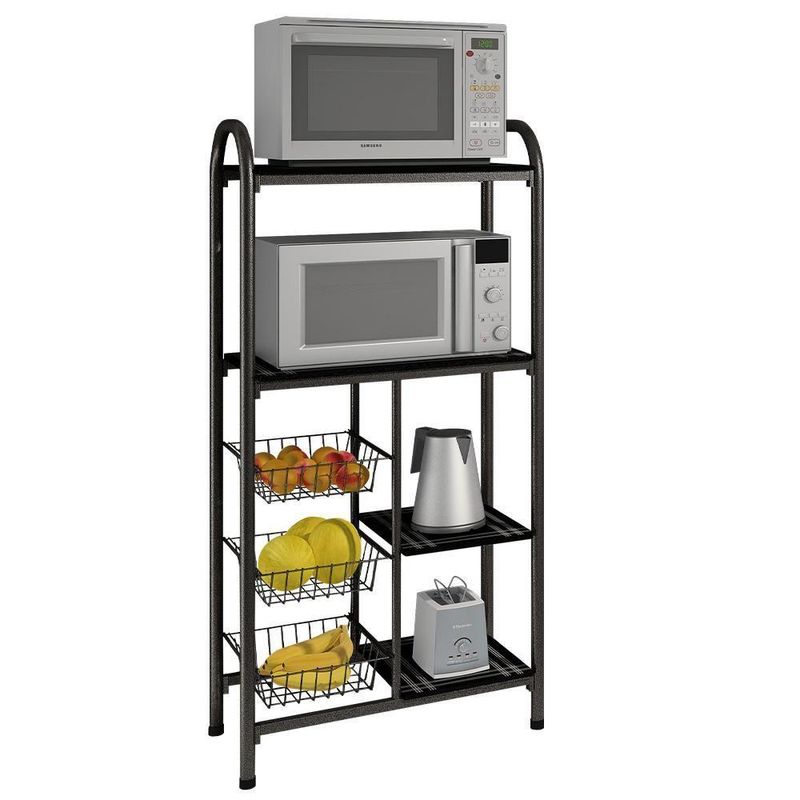 Fruteira De Chão Multi Belgica Bm Tubulares Prata MarteladoA Fruteira Bélgica da BM possui dois nichos para forno e cestos aramados para deixar a sua cozinha muito mais organizada. Suas duas prateleiras superiores permitem que você coloque dois eletros ou decorações. As 3 cestas aramadas são reforçadas e possibilitam que guarde frutas e legumes com facilidade e para fácil acesso. As prateleiras são em ardósia, que além de agregar qualidade, dão ao móvel todo charme que o seu ambiente merece. A fruteira para micro-ondas e forno é fabricada com tubos laterais em aço de alta qualidade, garantindo robustez e o máximo de resistência à estrutura da peça. Sua cozinha merece um móvel que a deixe ainda mais bonita e arrumada. NA