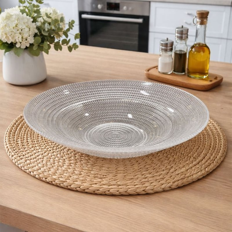 Fruteira Saladeira Redonda Vidro Centro Mesa Cozinha 1,700ml - Leve mais sofisticação e praticidade para sua mesa com a Fruteira Saladeira Redonda em Vidro de 1,700ml. Ideal para servir frutas, saladas, sobremesas ou até mesmo compor a decoração do ambiente, ela combina beleza e funcionalidade no dia a dia Características do produto: Capacidade: 1,700ml Material: Vidro Medidas: Altura 6cm x Diâmetro 30cm Formato: Redondo Conteúdo do pacote: 1x Fruteira/Saladeira de vidro 30cm 1,700ml Características Gerais do Produto: • Material: Vidro • Modelo: Fruteira Redonda • Cor: Transparente • Dimensões aproximadas: Altura 6cm x Diâmetro 30cm Garantia: • Garantia do site - 1 Mês