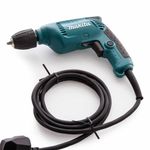 Furadeira 10mm 3/8'' 450W 6413 110V MakitaCódigo Fornecedor: 6413-110VMarca: MakitaItens que acompanham: Chave do mandril.A Furadeira Industrial 6413 da Makita é a ferramenta ideal para profissionais da marcenaria, metalmecânica, construção civil e entusiastas do faça você mesmo que buscam potência e versatilidade para realizar perfurações precisas em madeira, metal, plástico e diversos outros materiais com rapidez, eficiência e praticidade.Seu potente motor de 450W oferece alto desempenho para perfurar com força e precisão, mesmo em materiais mais resistentes.Tecnologia de ponta para maior controle, segurança e produtividade:Mandril de aperto rápido: Permite troca rápida e fácil de brocas.Velocidade variável: Ajusta a velocidade de acordo com o material e a aplicação, proporcionando maior controle e precisão.Rotação reversível: Facilita a retirada de brocas e parafusos.Dupla isolação: Segurança contra choques elétricos.Design ergonômico: Maior conforto durante o uso prolongado.Especificações:Potência: 450WCapacidade:Aço: 10mm (3/8)Madeira: 25mm (1)Rotações por minuto: 0 - 3.400Mandril: 10mmDimensões: 234 x 64 x 183mmPeso: 1.3kgEmissão de vibrações: 3.5 m/s²Incerteza K: 1.5m/s²Segmentos:MarcenariaMetal MecânicaConstrução CivilFaça você mesmoAplicações:Perfuração de madeira maciçaMadeira compensadaMDFChapas metálicasPerfis metálicosTubos metálicosPlásticoE muito maisGarantia: 12 meses Marca: | É de empunhadura tipo espada: | Com controle de torque: | Com empunhadura soft grip: | Modelo: | MPN: | Altura: | Tempo de carga da bateria: | Com luz LED: | Tamanho do mandril: | Com velocidade variável: | Amperagem da bateria: | Modelo detalhado: | Torque máximo: | Outros acessórios incluídos: | Com função percutor: | Tipo de bateria: | Comprimento: | Capacidade máxima de perfuração em madeira: | Frequência: | Com função parafusadeira: | Apresentação: | Velocidade máxima de rotação: | Inclui carregador: | Quantidade de baterias: | Capacidade máxima de perfuração em metal: | Cor principal: | Linha: | Peso: | É sem fio: | Tipo de tecnologia do motor: | Voltagem da bateria: | Velocidade mínima de rotação: | Largura: | Inclui bateria: | Com função reversa: